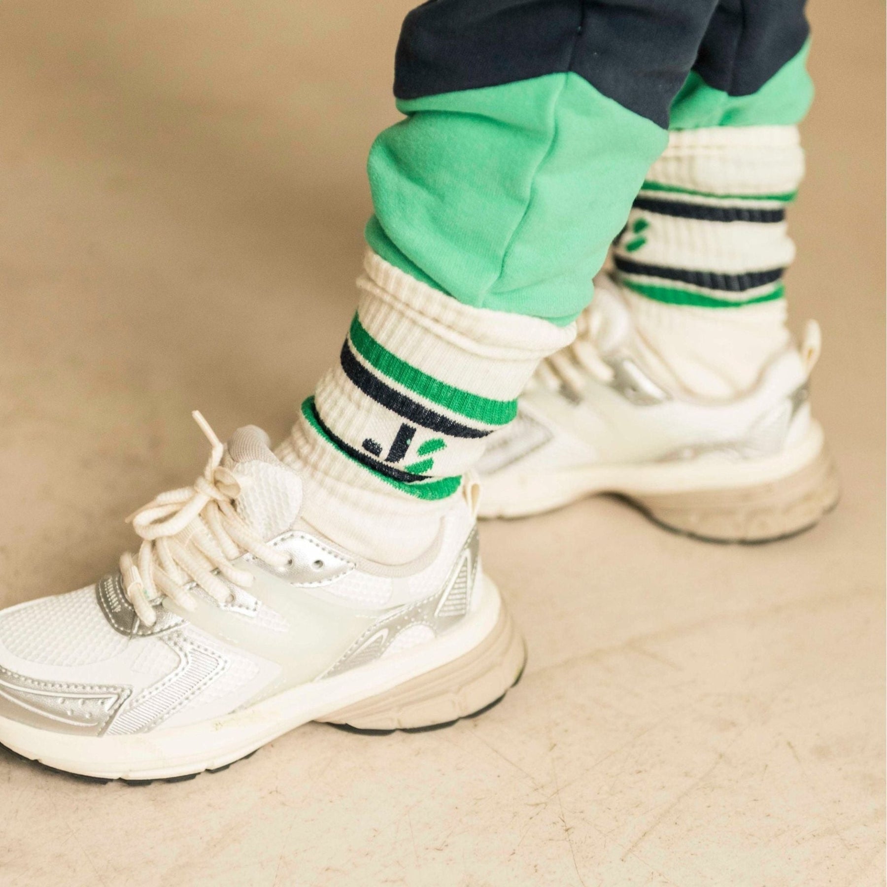Mooie sport sokken in wit met blauw en groene streepjes van Jenest.
