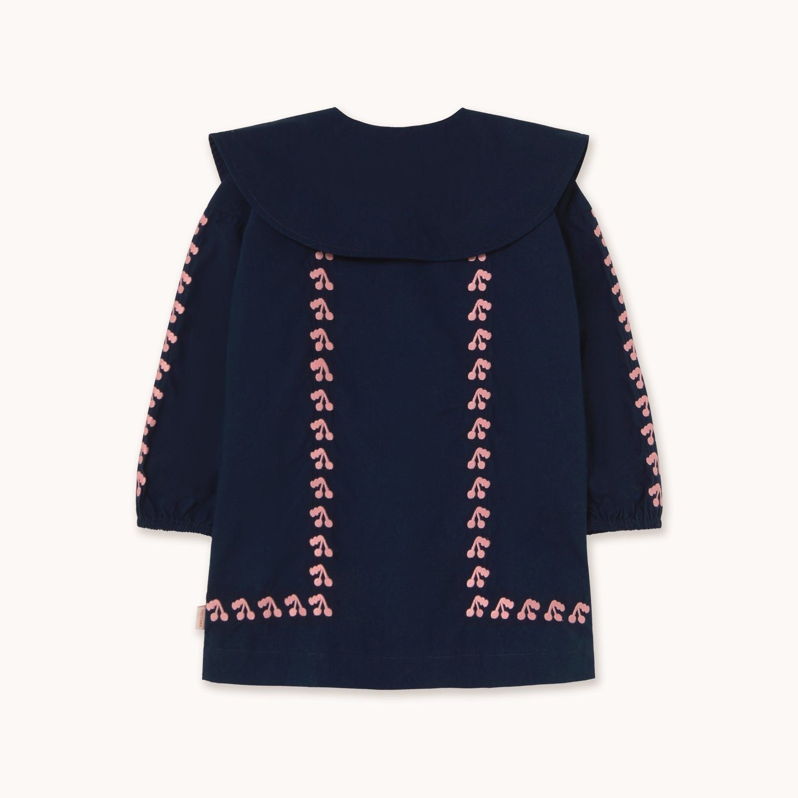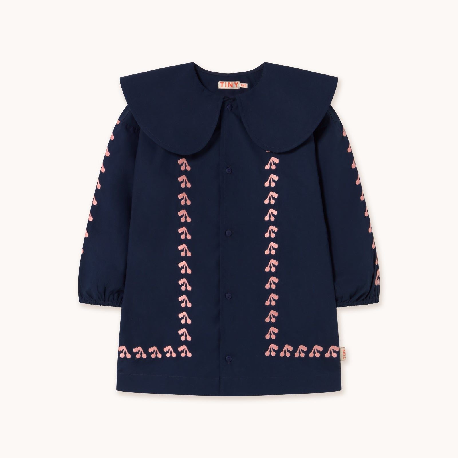Deze jurk van Tiny Cottons is gemaakt van katoen en is heel mooi afgewerkt met een frivole kraag en kleine kersen. Gemaakt in India.