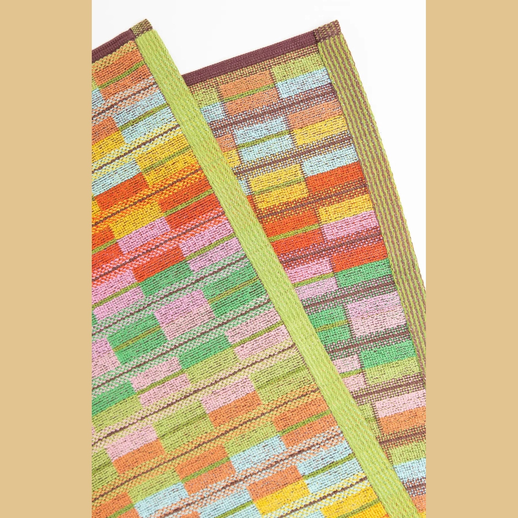 Colorful home textiles made of industry leftovers! When factories dye yarns to weave textiles, they make some extra—just in case—but they often go unused. The Odds & Ends textiles are designed to get the most out of these remainders, creating unexpected color combinations.
