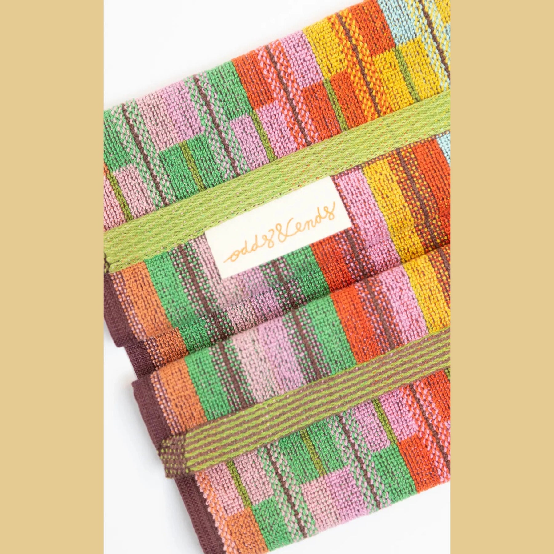 Als fabrieken garen verven om er daarna textiel mee te weven, maken ze altijd wat extra, voor de zekerheid. Maar die extraatjes blijven vaak ongebruikt. Odds & Ends is bedacht om het maximale uit deze ongebruikte restanten te halen, waardoor eindeloze onverwachte kleurencombinaties ontstaan en er geen restjes overblijven. Stuk voor stuk prachtig geweven en van dikke kwaliteit.
