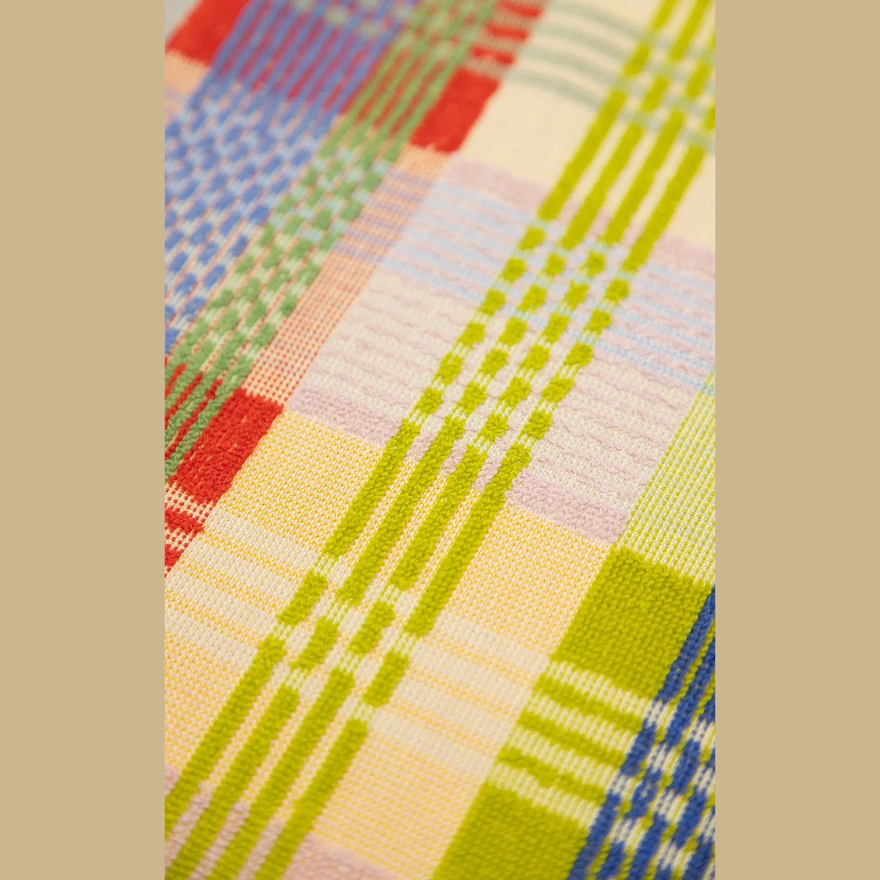 Colorful home textiles made of industry leftovers! When factories dye yarns to weave textiles, they make some extra—just in case—but they often go unused. The Odds & Ends textiles are designed to get the most out of these remainders, creating unexpected color combinations.