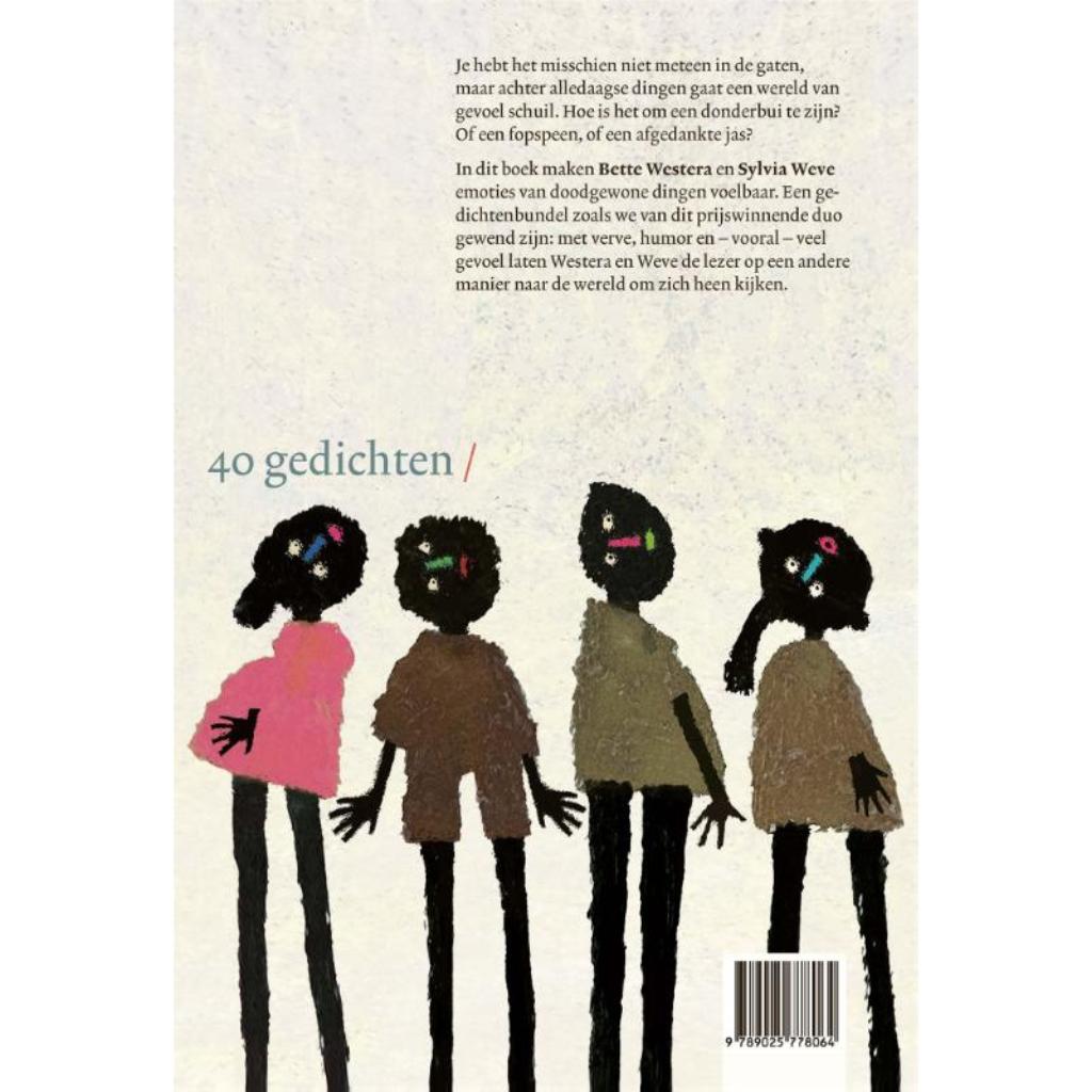 In 'Zo voelt dat' duiken de veelbekroonde Bette Westera en Sylvia Weve in de emoties en gevoelens van de dingen in ons leven. Achter alledaagse dingen gaat een wereld van emoties schuil. Een donderbui kan heel opvliegend zijn, een losgelaten knoop bedroefd en een lantaarnpaal onbewogen. In treffende gedichten ontsluit Bette Westera het gevoel van doodgewone dingen. De expressieve illustraties van Sylvia Weve zetten die veelheid van gevoelens kracht bij. 'Zo voelt dat' is een gedichtenbundel zoals we van het gouden duo achter o.a. 'Doodgewoon' en 'Uit elkaar' gewend zijn: met verve, humor en - vooral - veel gevoel laten Westera en Weve de lezer op een andere manier naar de wereld om zich heen kijken.