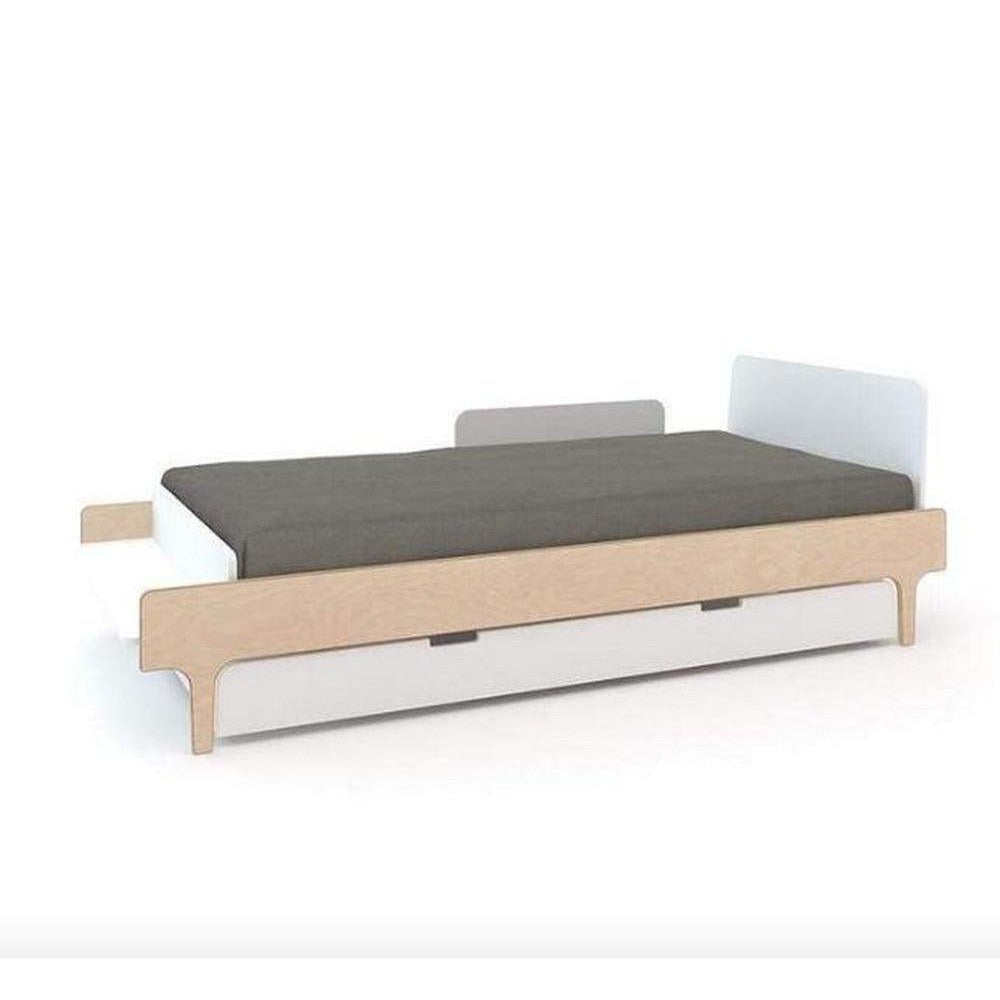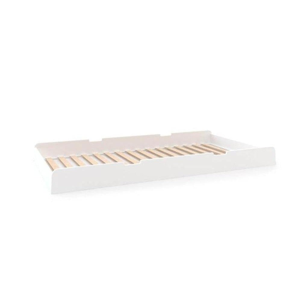 Dit bed is in de vorm van een schuif op maat gemaakt om onder het Riverbed van Oeuf te gebruiken. Let op dat de matras die hierin dient te worden gebruikt iets kleiner is dan de matras van het bed zelf. De matras voor in deze trundle hoort maat 90 x 190 x 12 cm te hebben. Deze matras is via ons te verkrijgen.