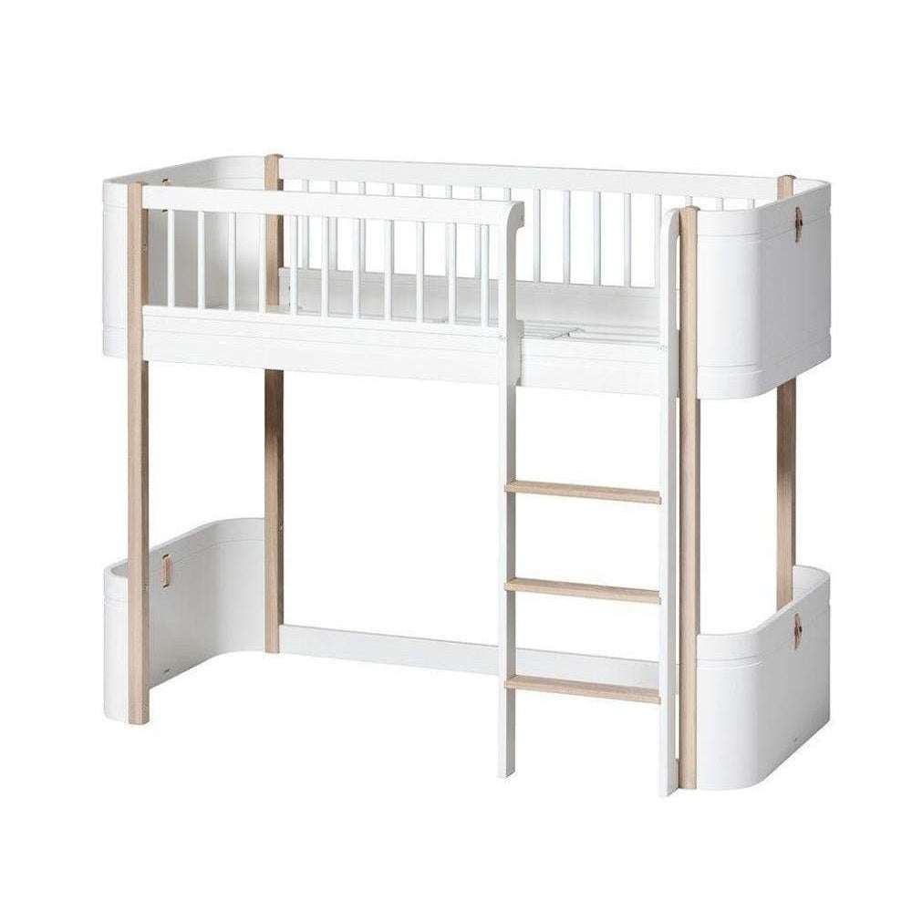 Wood Mini+ low loft bed 041447 van Oliver Furniture is perfect voor diegene die graag hoog en droog slapen! Deze junior half-hoogslaper uitvoering zorgt er voor dat het niet te druk aanvoelt in de slaapkamervoor, het is ietsje lager dan een een standaard hoogslaper.