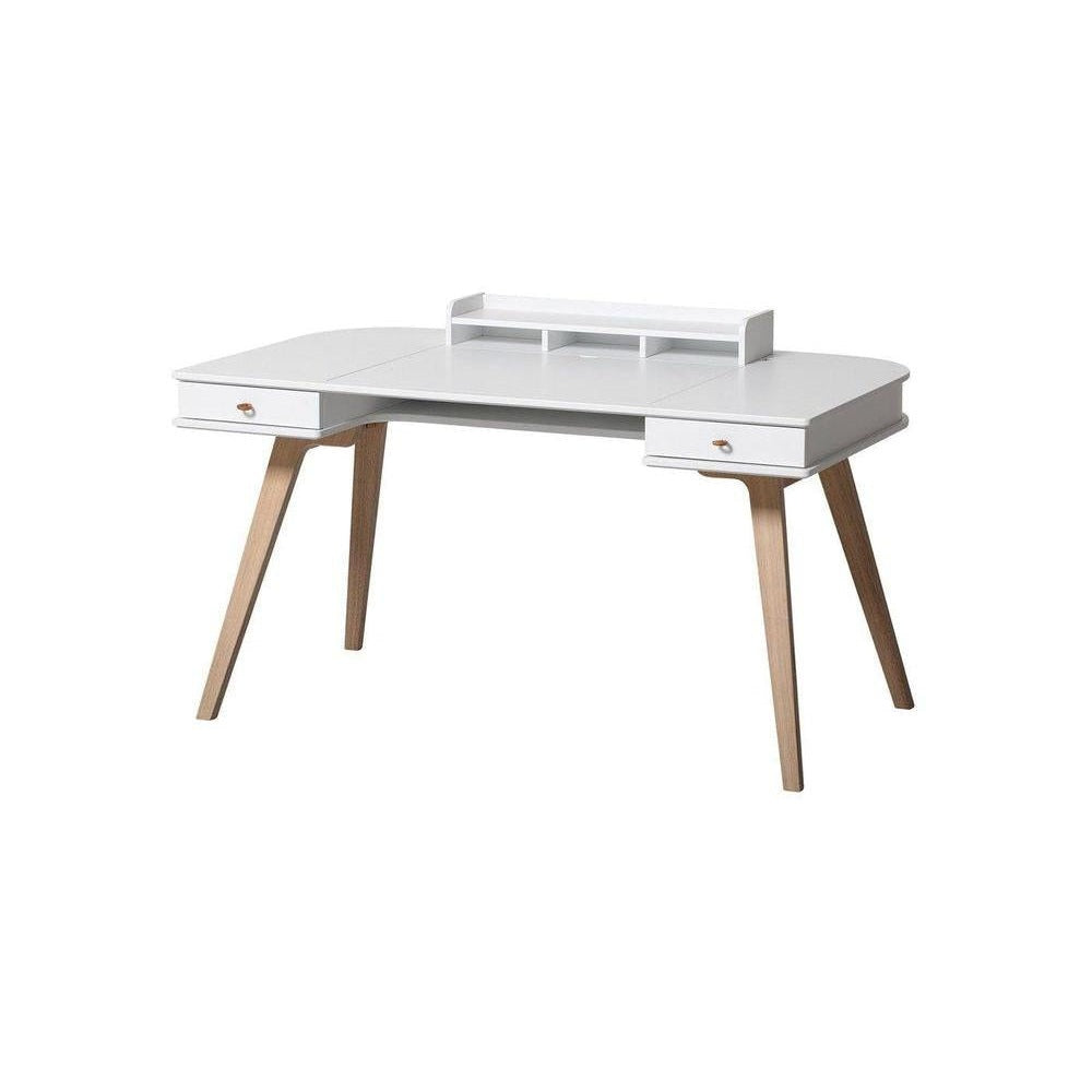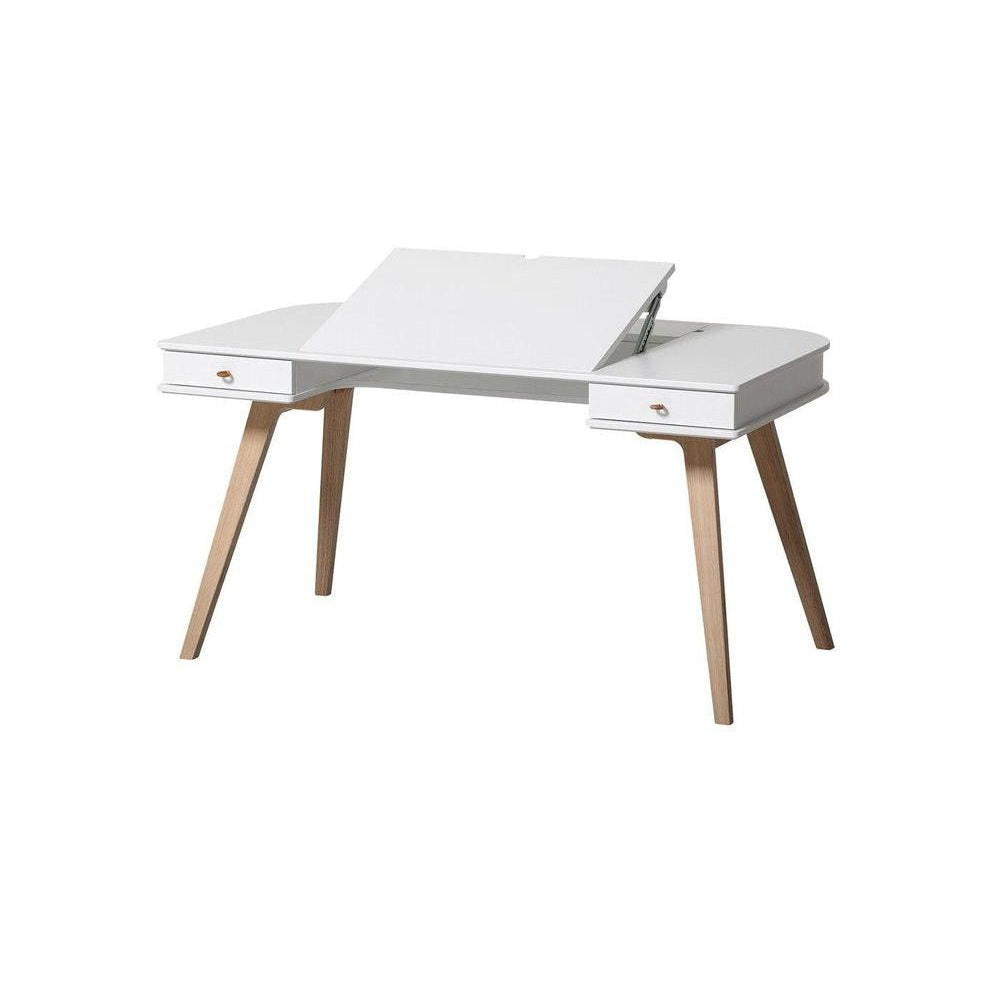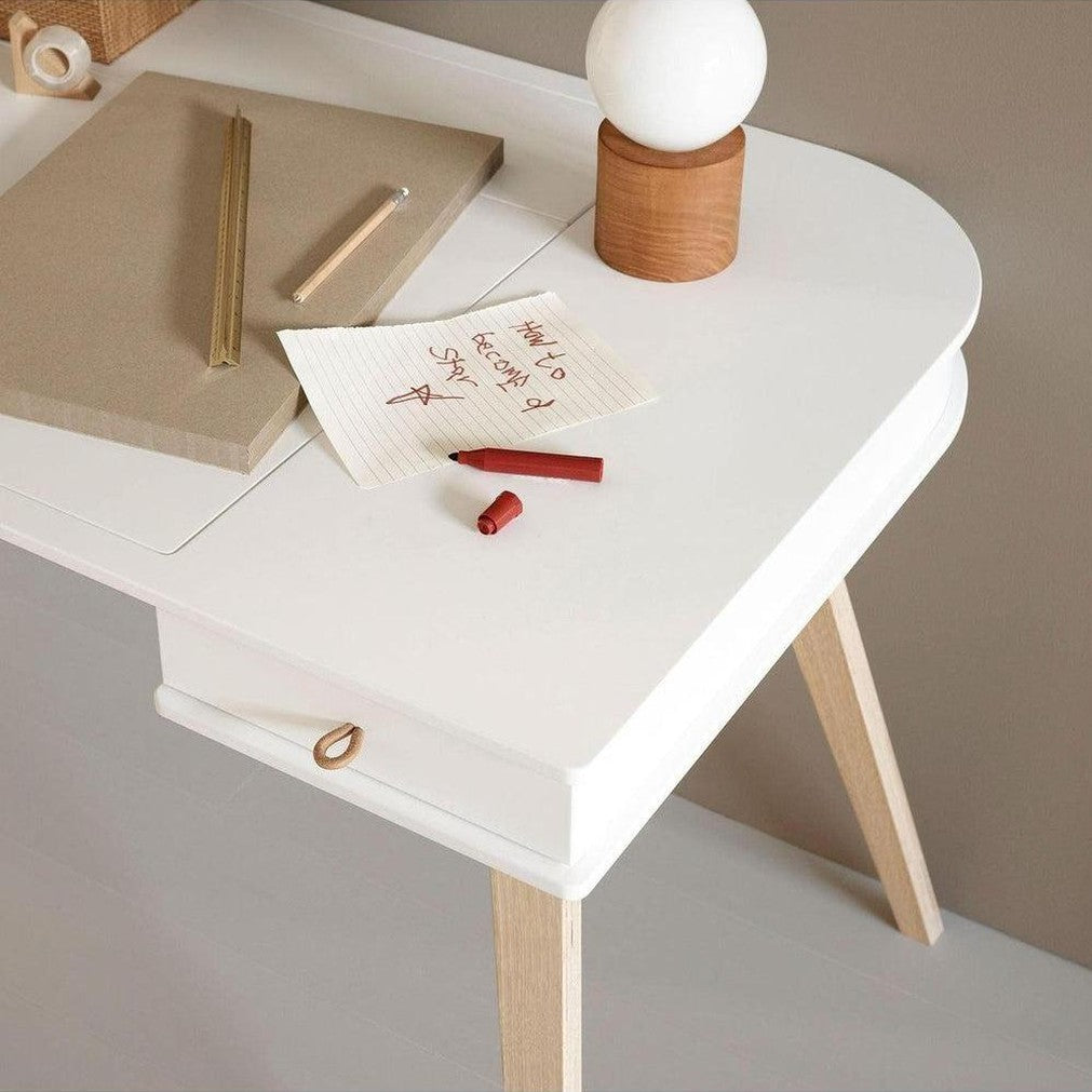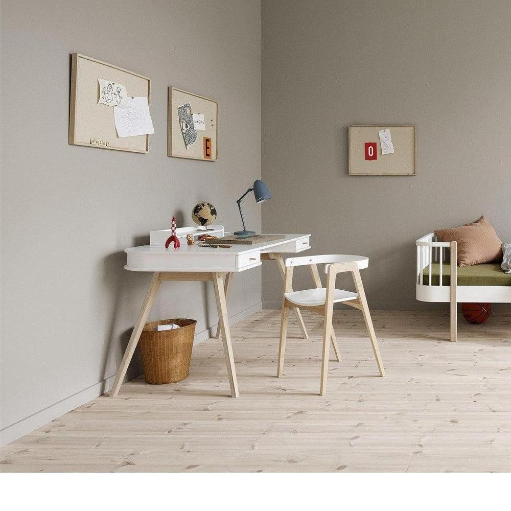 Dit eiken bureau 041010 van oliver Furniture heeft een heel tijdloos en uitgepuurd design dat in iedere stijl kamer integreert. Het past zich aan aan de noden van uw kind, en is voorzien van de nodige handige details. Zo kunnen oplader draadjes mooi weggestopt worden, en kan het tafelblad omhoog indien nodig. Er is ook een bijpassende mooie bureaustoel in het gamma van Oliver Furniture. Dit bureau is een beetje lager dan de standaard model, waar verandering in kan komen door de vervangbare poten (apart te bestellen)!