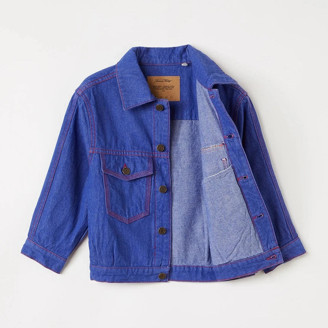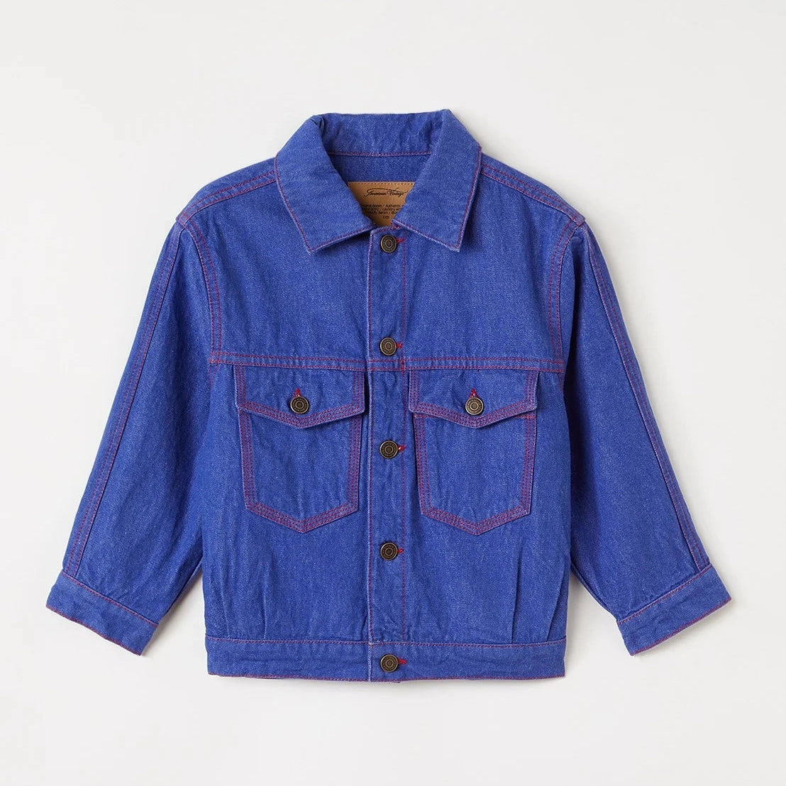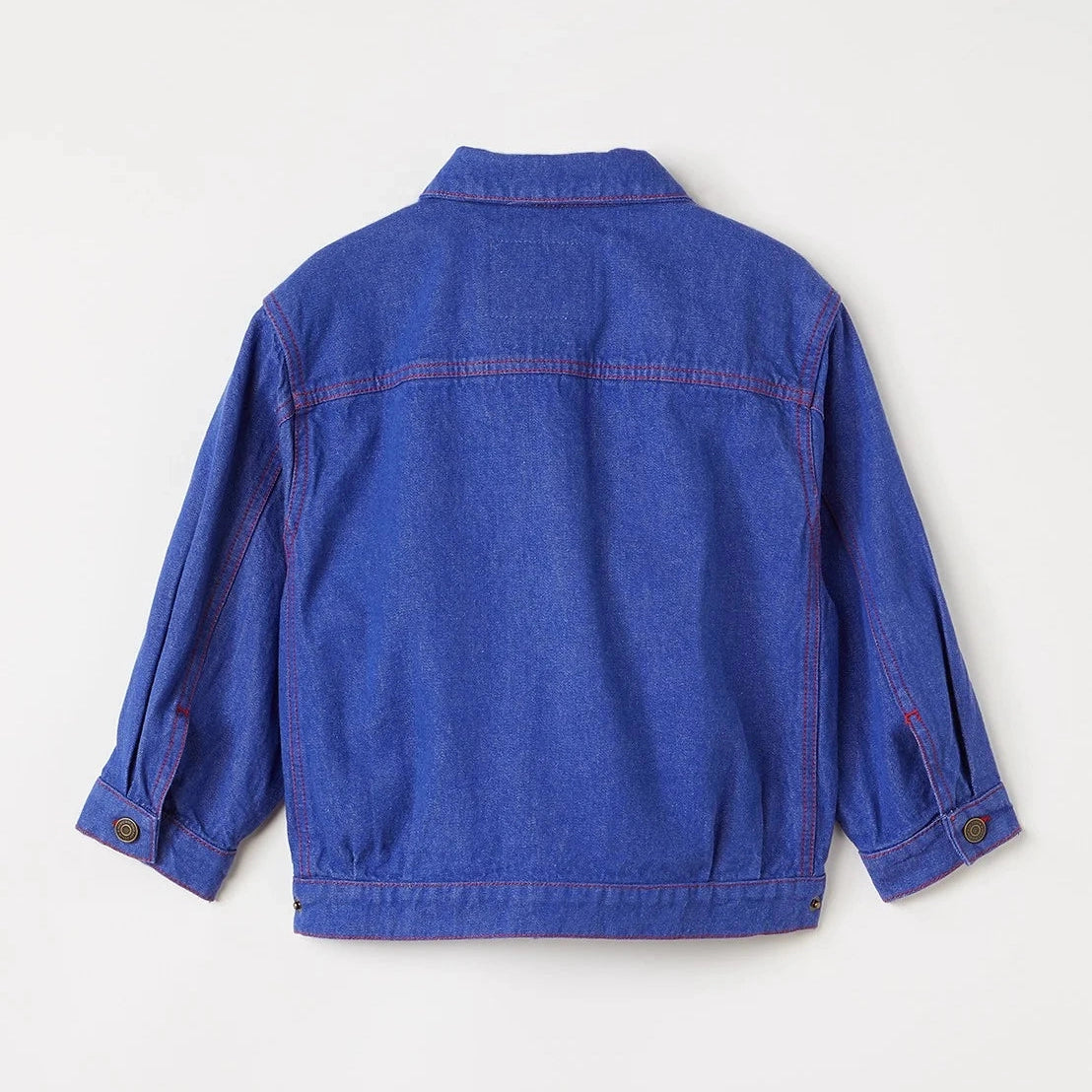 Het Grezbay-overhemd met lange mouwen voor kinderen is een uitgesproken retro-item met zijn ruwe denimstof en neonblauwe kleur met contrasterende stiksels. Het materiaal is bovendien gemaakt van biologisch katoen. Het shirt is slijtvast en onderhoudsvriendelijk en kan worden gedragen met de jeans uit dezelfde Grezbay-collectie voor een totale denimlook of met een joggingbroek voor een meer casual look.