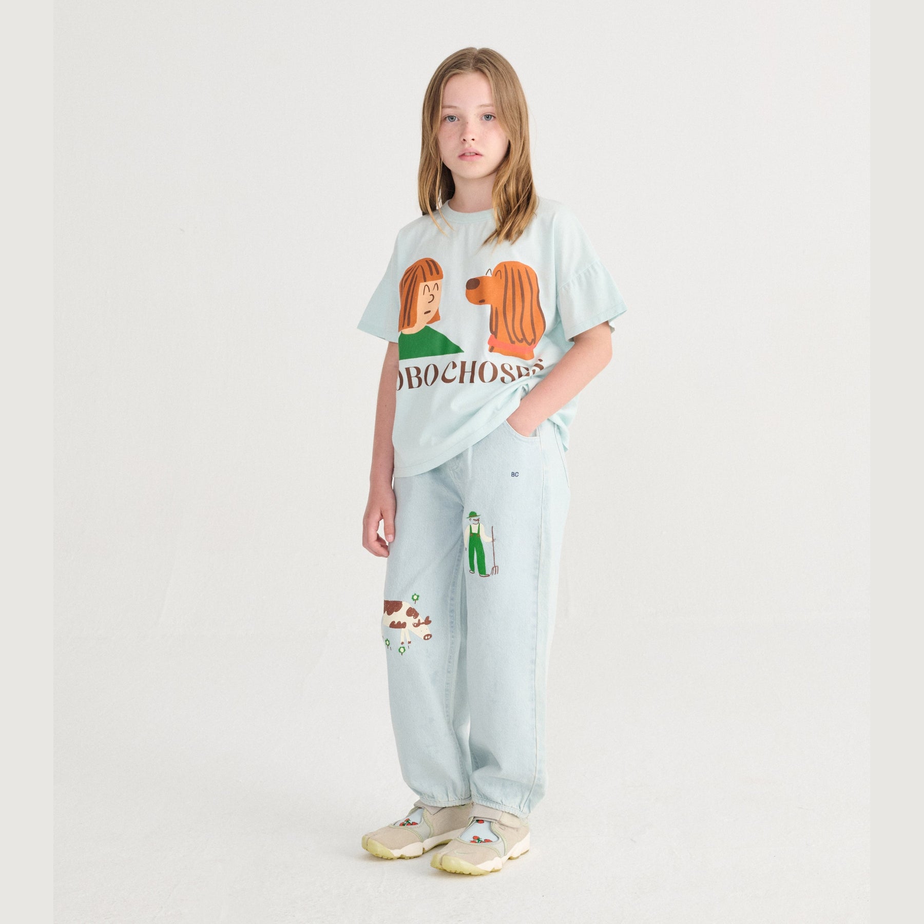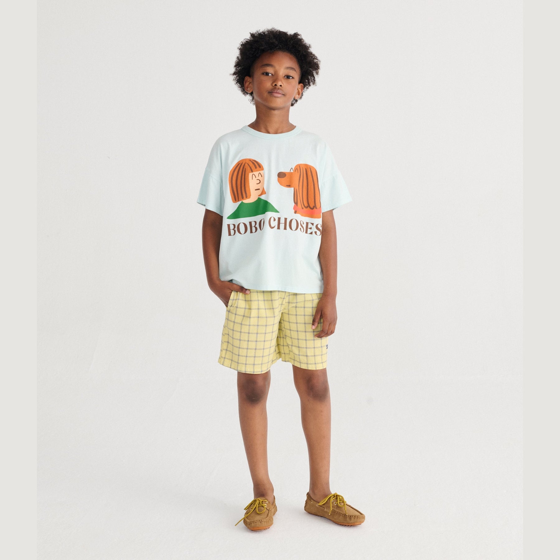 Leuke t-shirt met hond en kind in blauw van Bobo Choses.