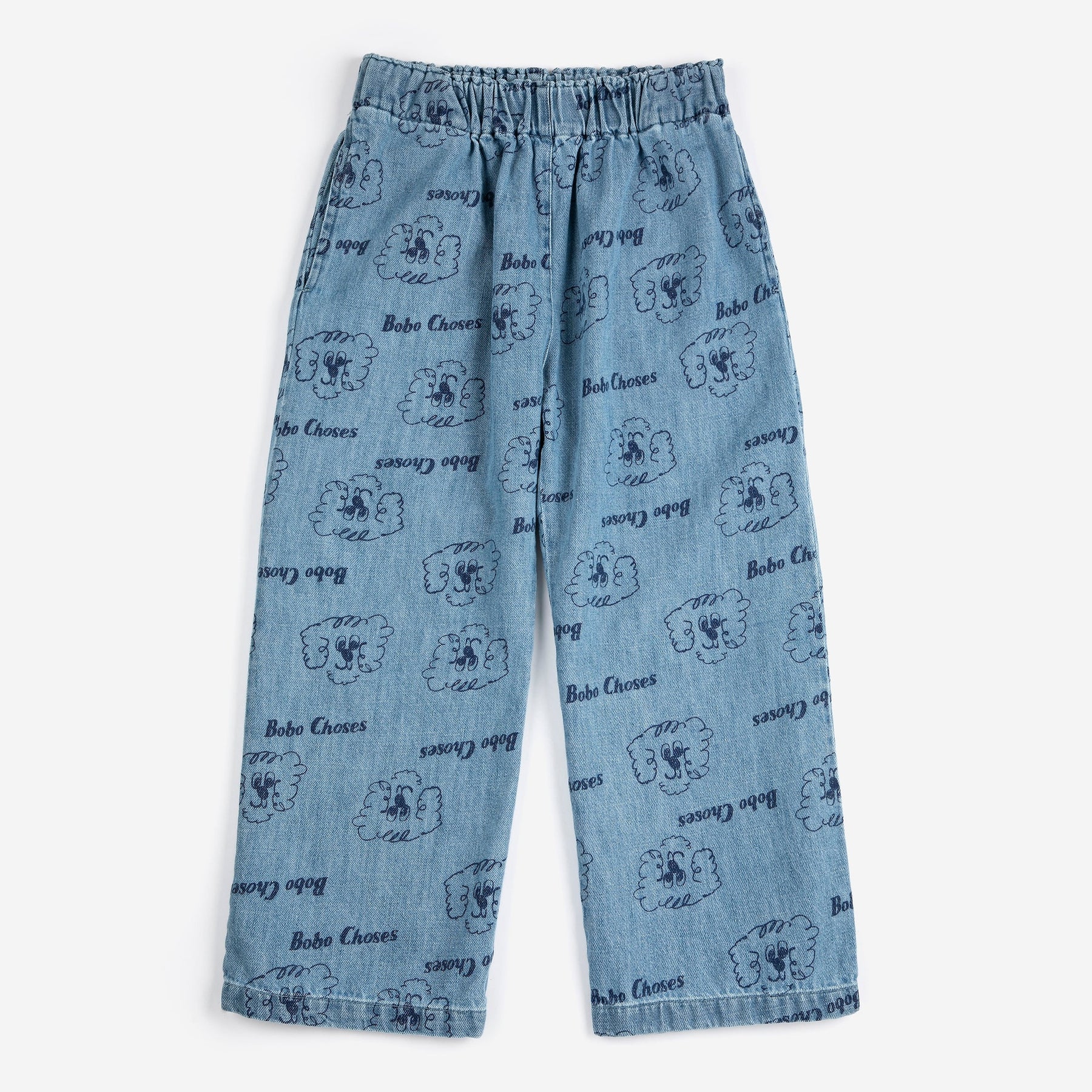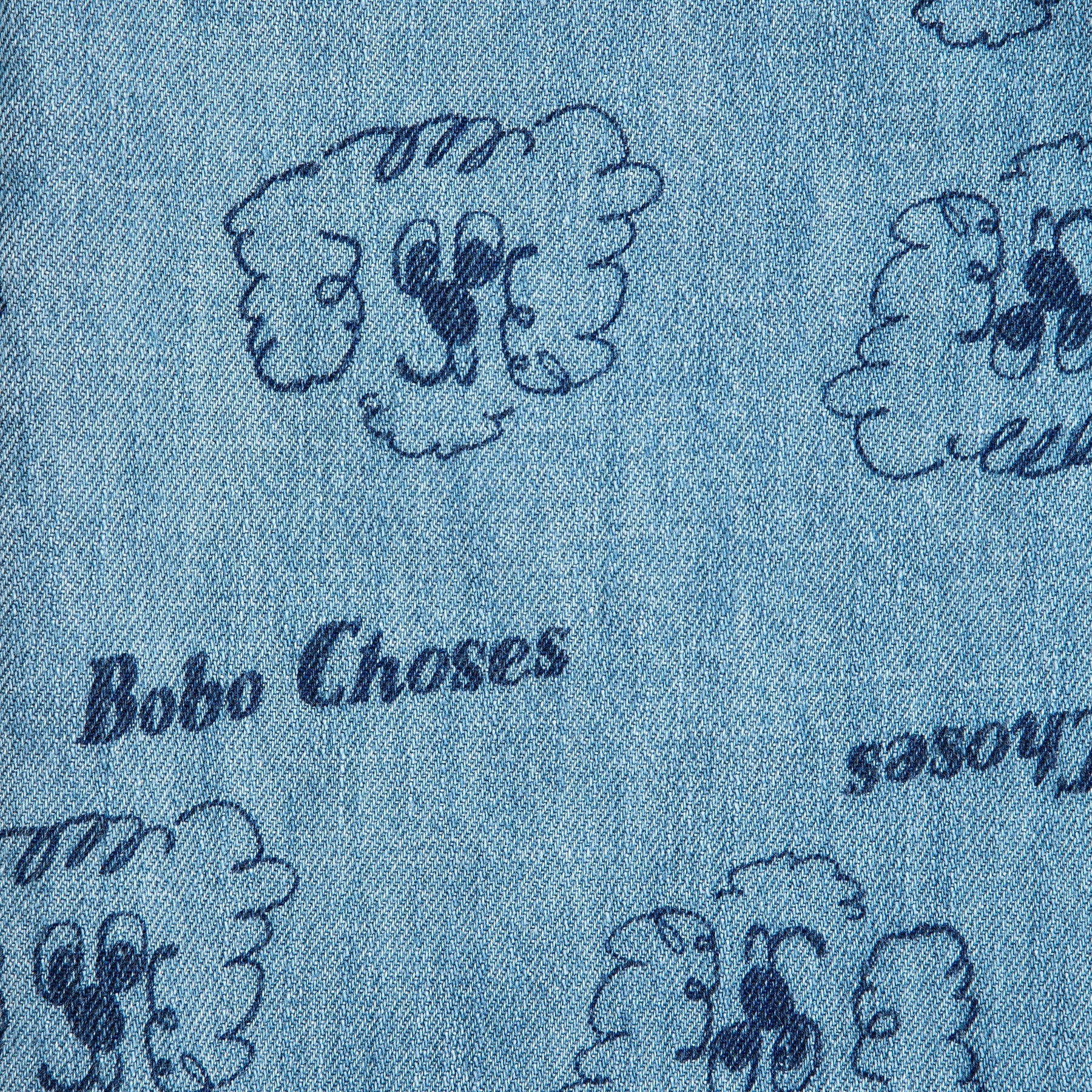Leuke denim broek met hondjes op van Bobo Choses.