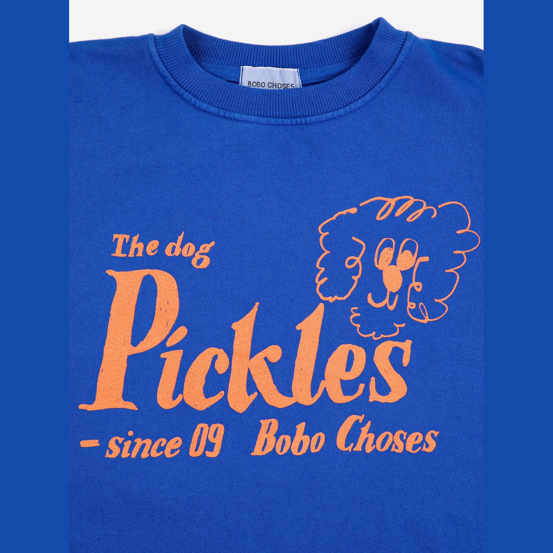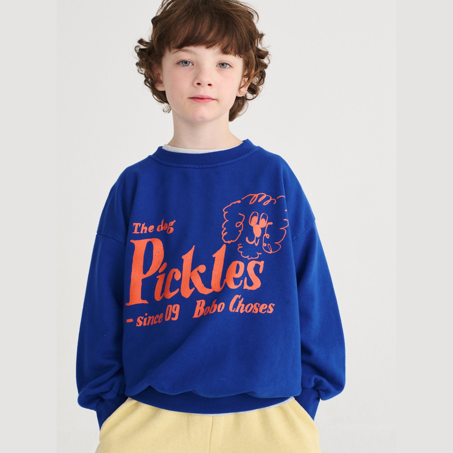 Cobalt blauwe sweater met oranje tekst van Bobo Choses.