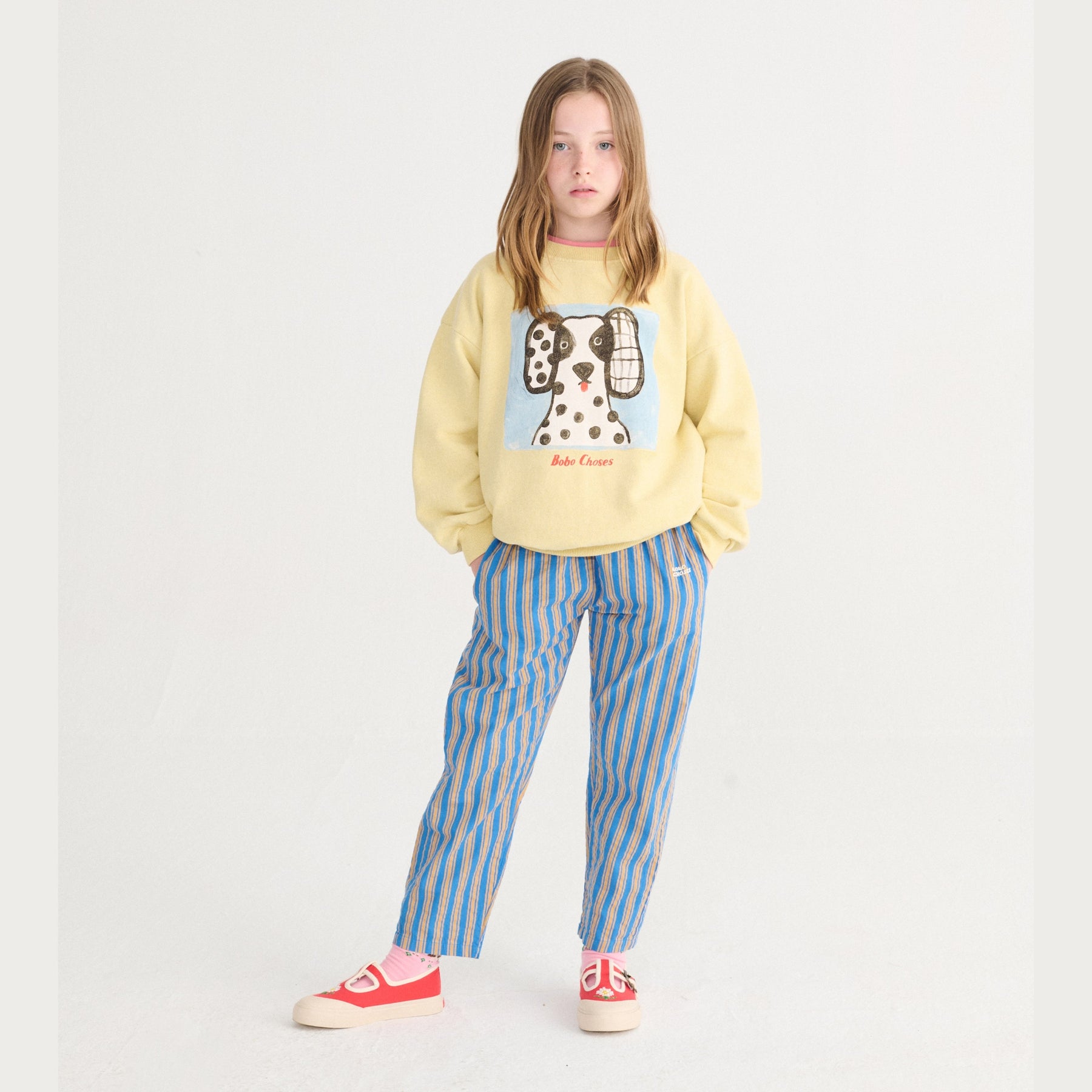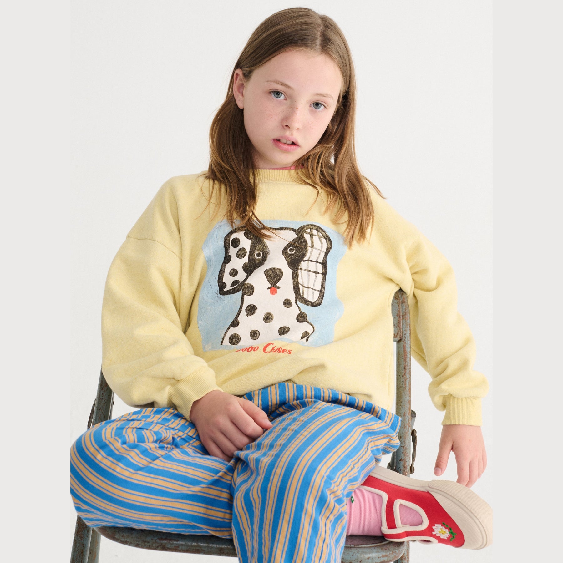 Sweater in geel met zwart en witte hond op van Bobo Choses.