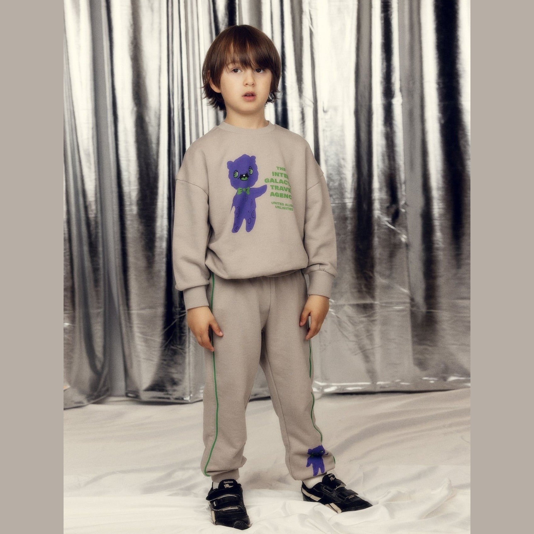 Laat kinderen comfortabel en speels bewegen met de Mini Rodini Alien Travel Agency Sweatpants. Deze zachte kinderbroek is gemaakt van 100% biologisch katoen en afgewerkt met een opvallende Alien Travel Agency-print op het been. De elastische tailleband met trekkoord zorgt voor een perfecte pasvorm, terwijl de geribde enkels en contrasterende zijstrepen extra comfort en bewegingsvrijheid bieden. Het getailleerde ontwerp maakt deze broek ideaal voor school, speelafspraken of avontuurlijke dagen buiten.