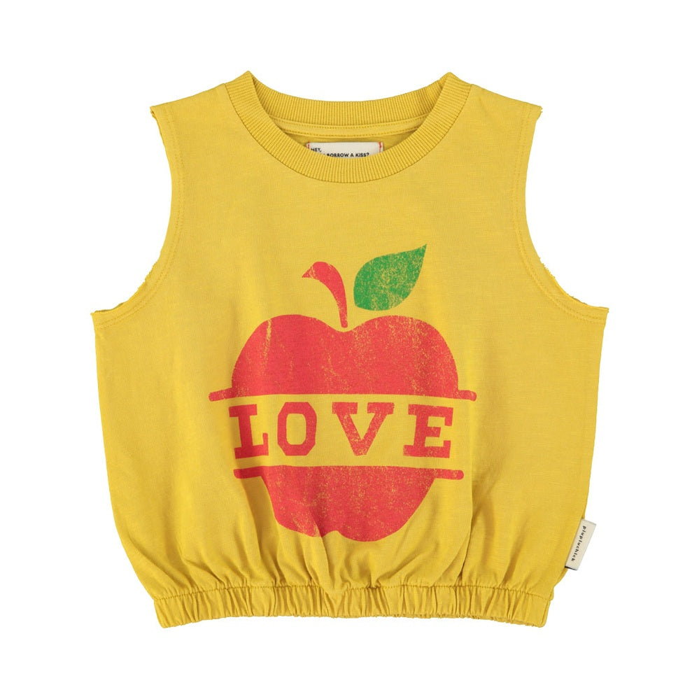 Mooie top in geel met opdruk van Piupiuchick.