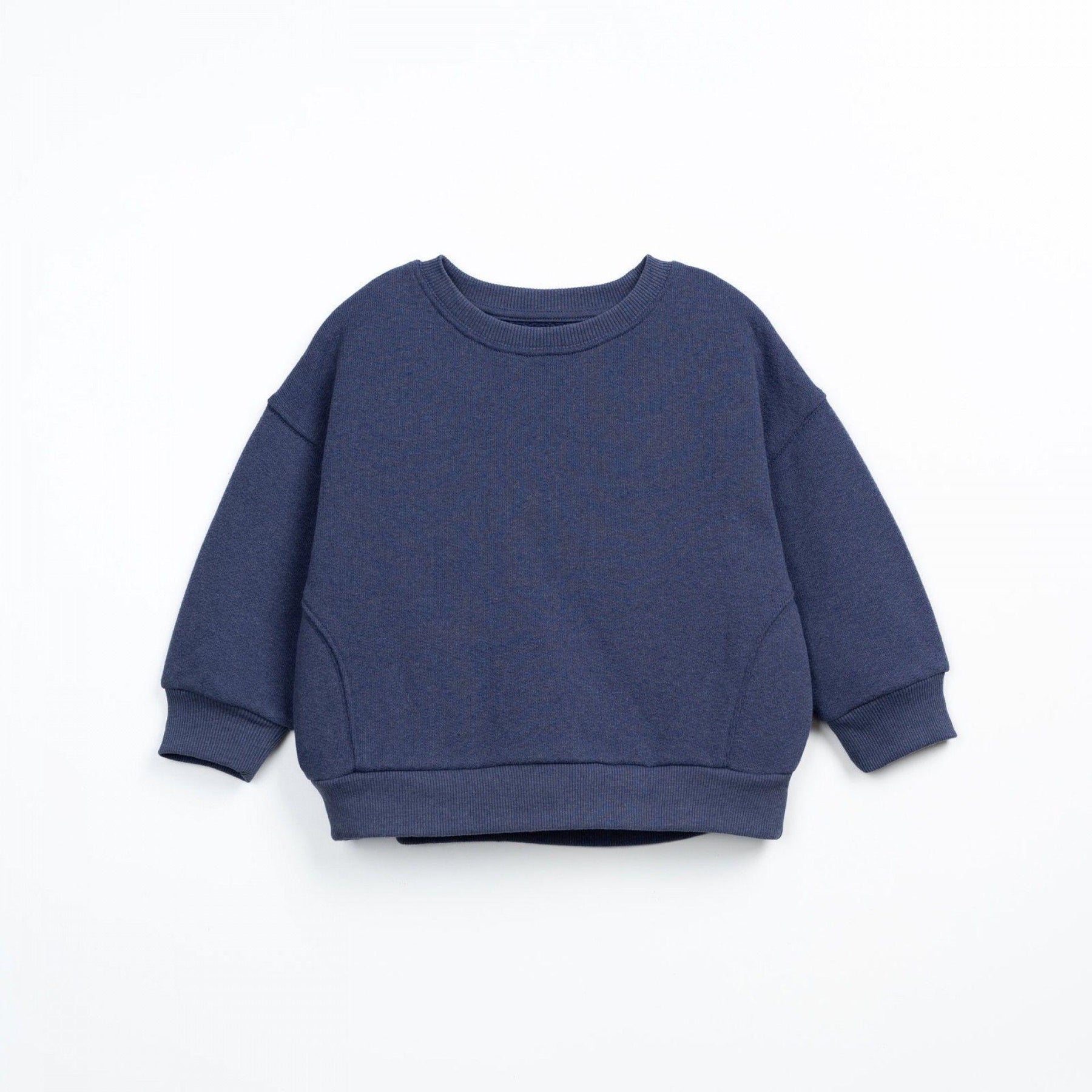 Deze klassieke donkerblauwe sweater van Play Up is een perfecte basic in de herfstgarderobe. Gemaakt van katoen, gerecycleerd katoen en gerecycleerd polyester.