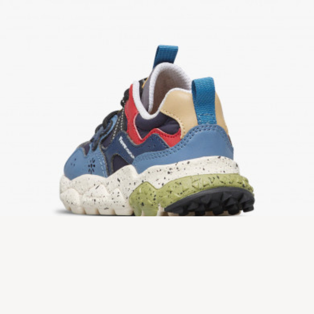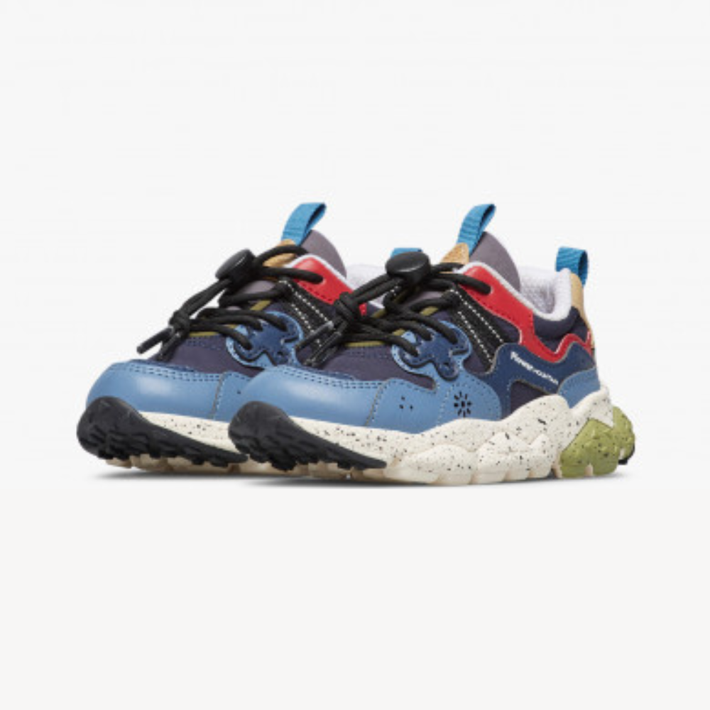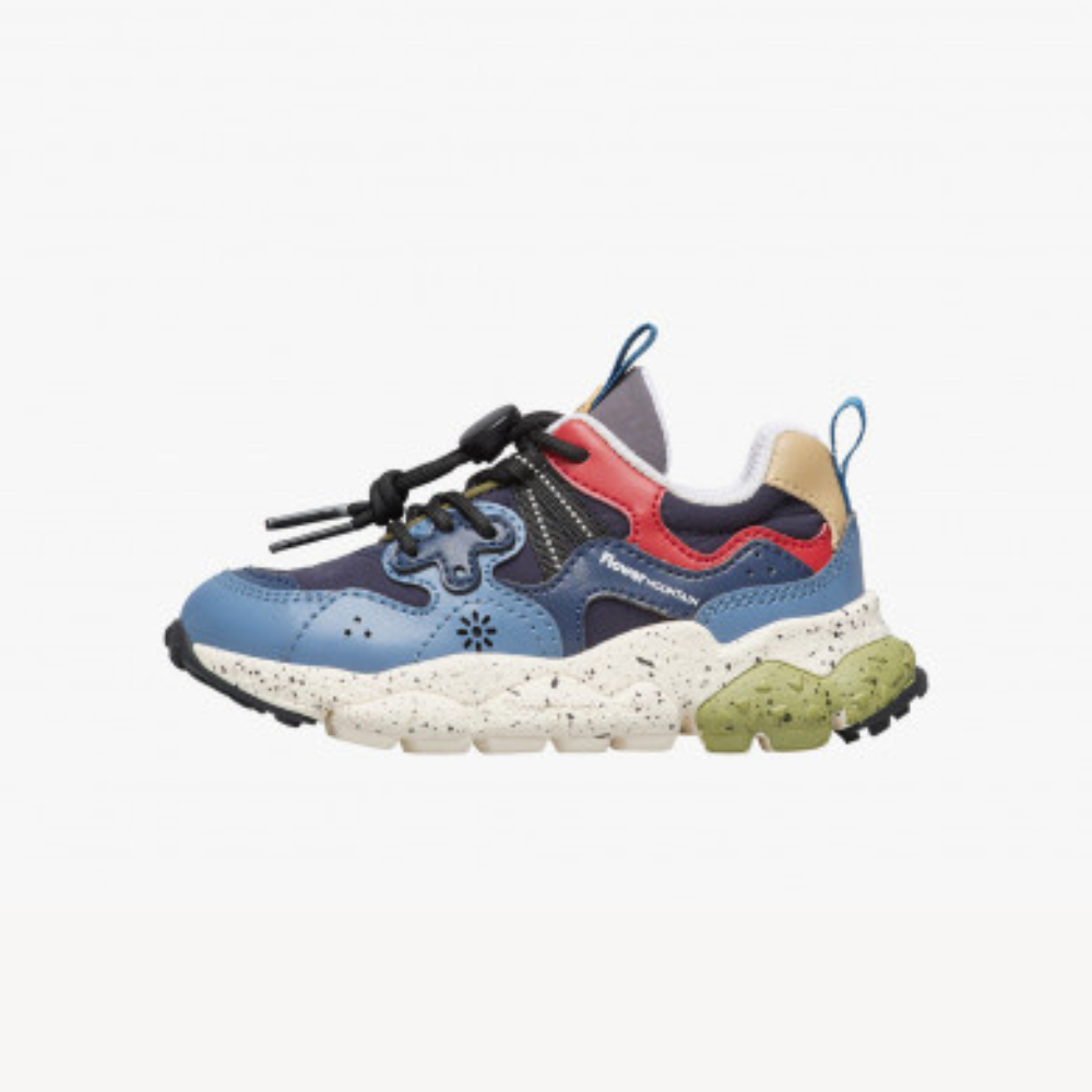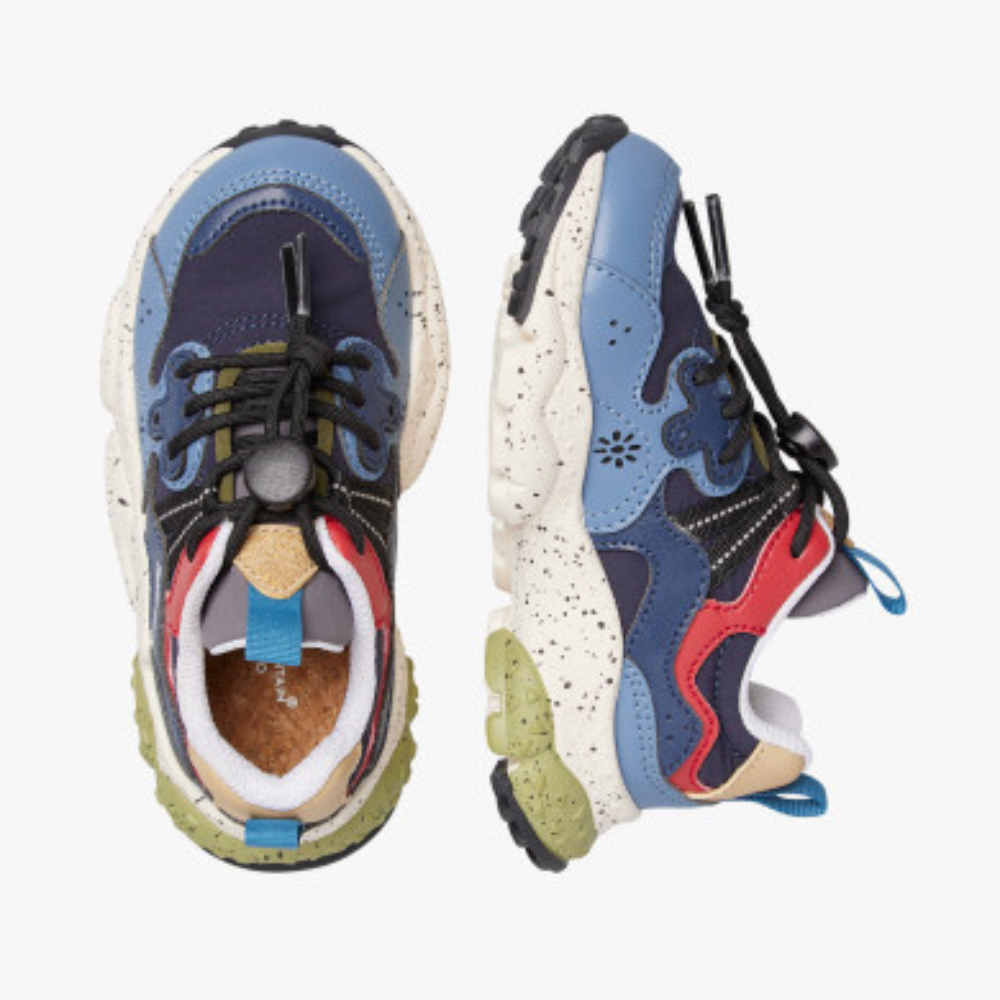 Vrolijke, stoere sneaker met blauw en rood van Naturino Flower Mountain.