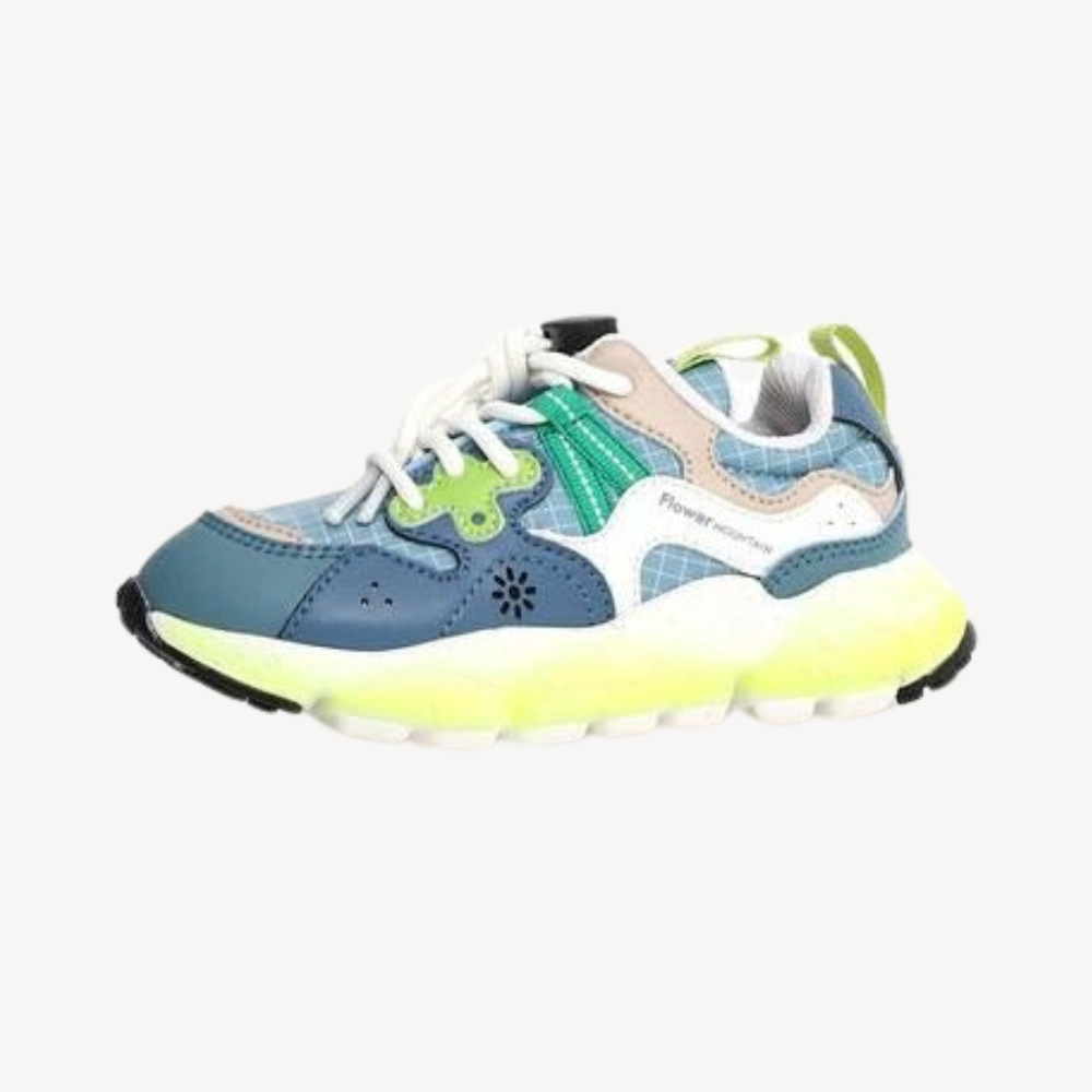 Sportief van geest en trendy van stijl, zal deze sneaker de ster zijn van de intensieve activiteiten van uw peuter, kind en tiener. Het bovenwerk van ademende technische stof wordt omwille van de duurzaamheid aangevuld met inzetstukken van kunstleer. De veter met drukknop om de veters strak of los te maken, zorgt ervoor dat uw kind zijn veters niet hoeft te binden! De ultralichte rubberen zool zorgt voor demping en grip op elke ondergrond. De binnenzool is van kurk gemaakt, wat een fijn natuurlijk en ademend materiaal is.