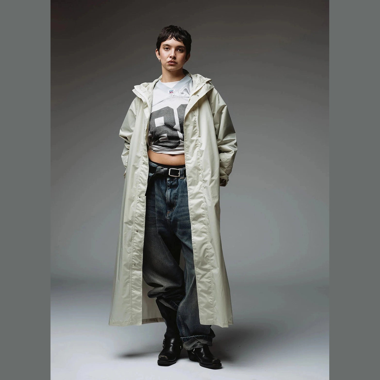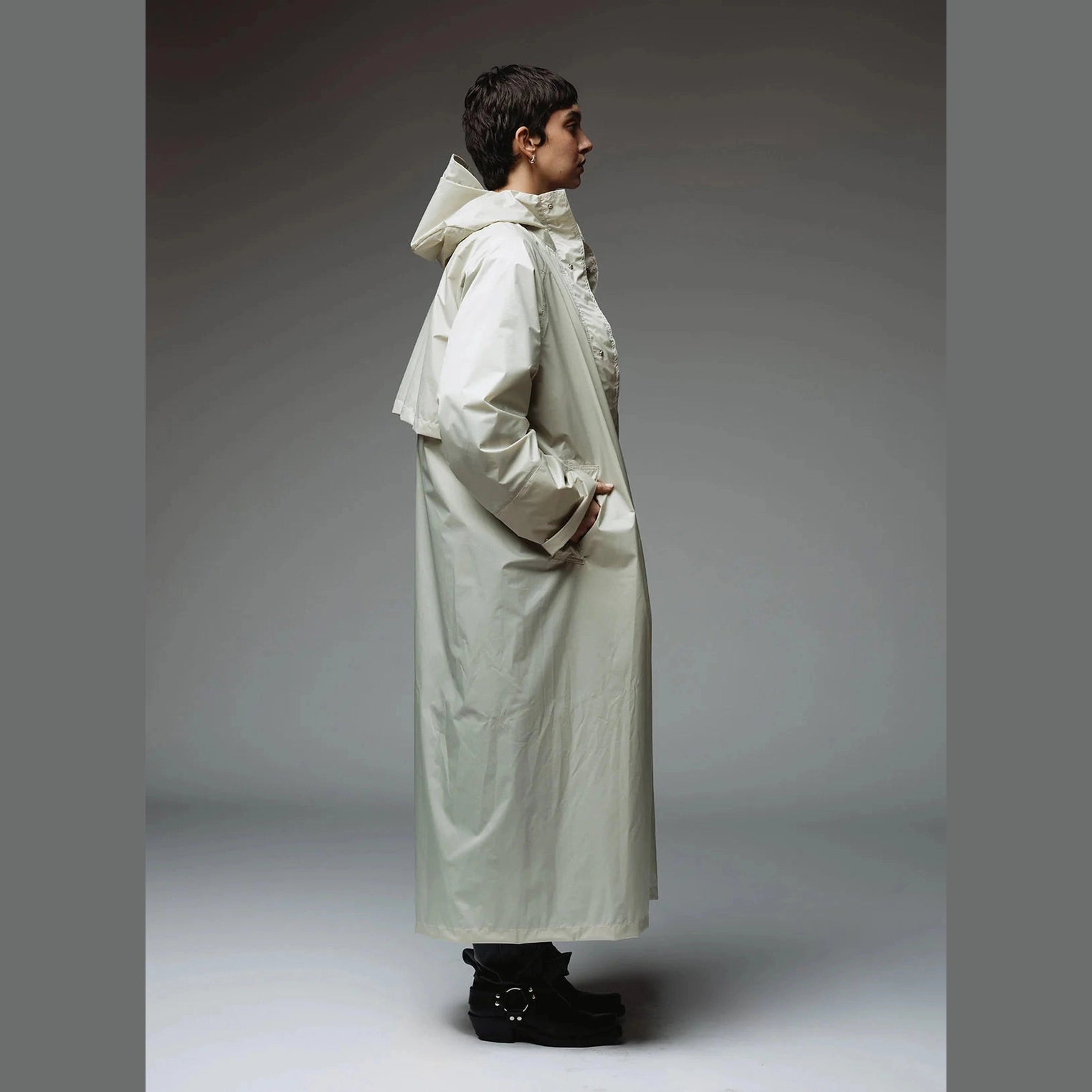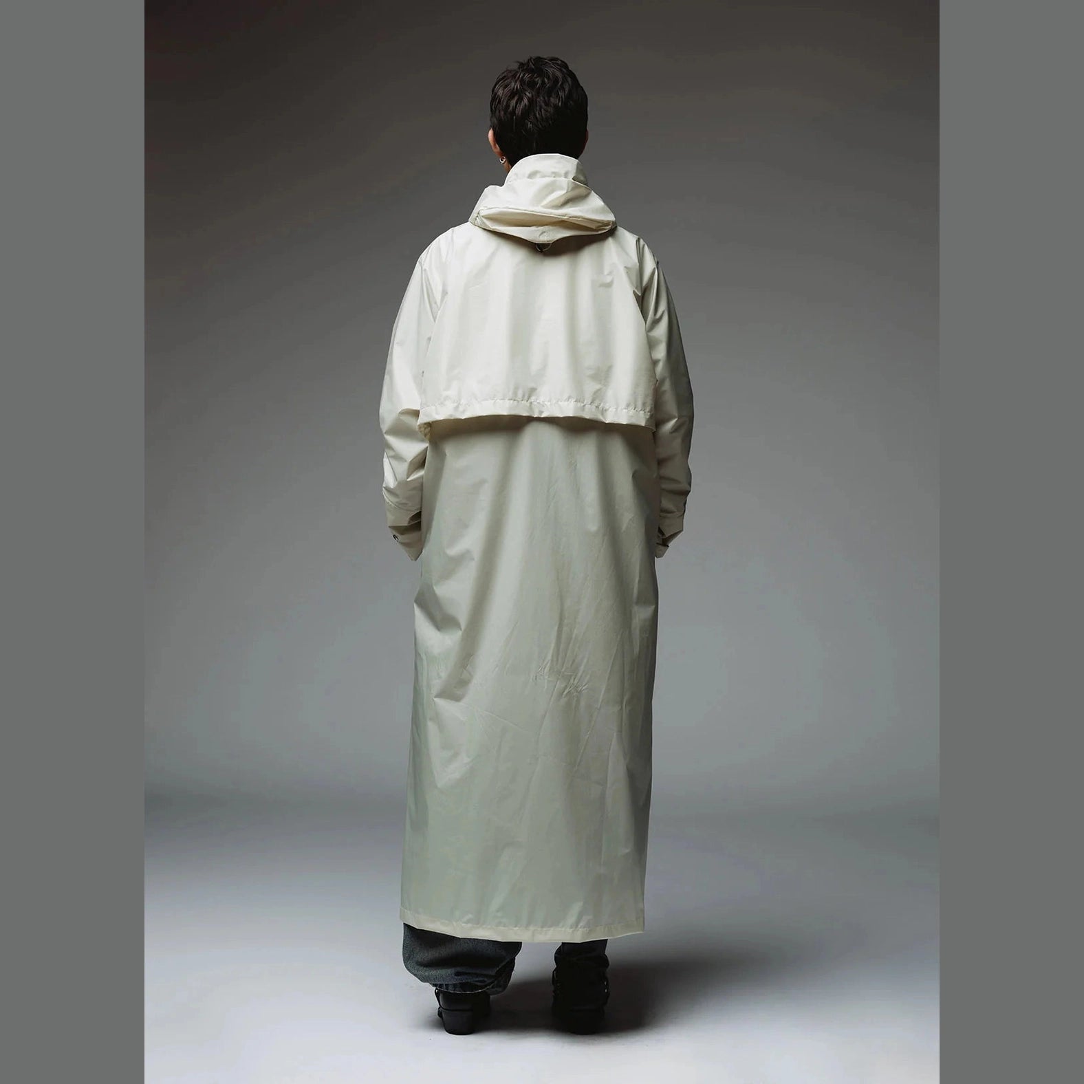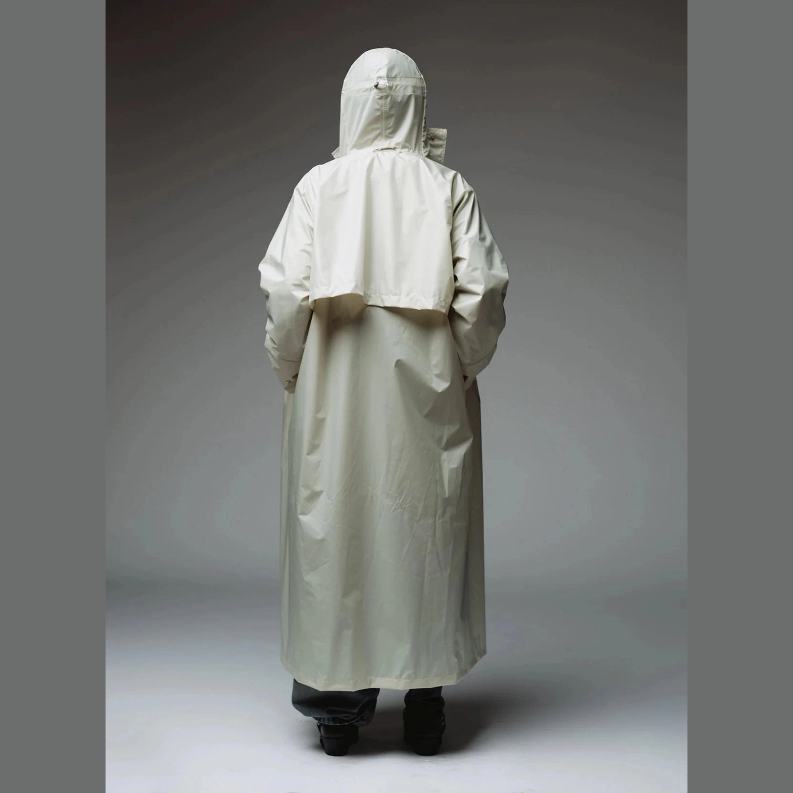 Een elegante, extra lange regenjas. Dit vertrouwde ontwerp is vernieuwd met een verfijnd silhouet en is nu verkrijgbaar in drie maten. De subtiele wijdte en stormflap aan de achterkant kenmerken deze elegante jas. De capuchon is ontworpen voor optimaal zicht, met een klep om de regen uit je ogen te houden en een verstelmechanisme om het gezichtsveld te optimaliseren. Ventilatieopeningen aan de achterkant zorgen voor ademend comfort.