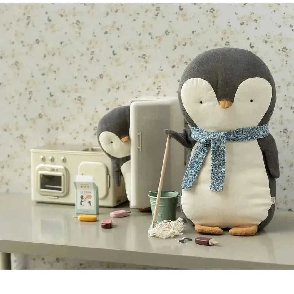 Onze pinguïn is een lieve vriend die je overal kan volgen. Hij is gemaakt van zachte stoffen en heeft bolletjes in de rug zodat hij makkelijk kan zitten.