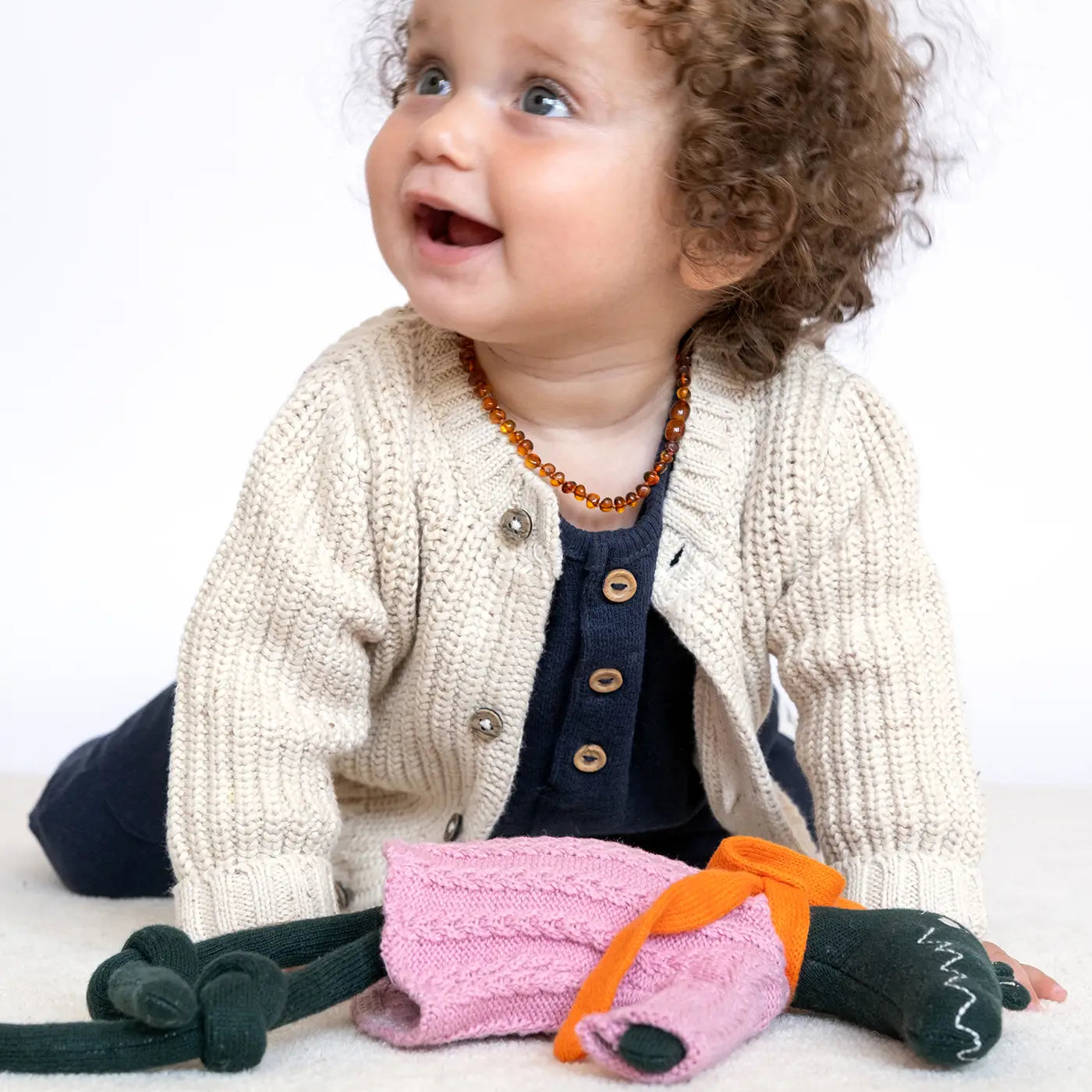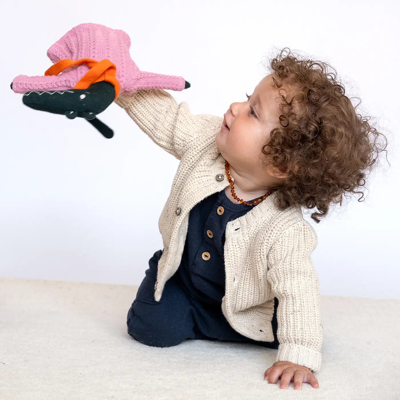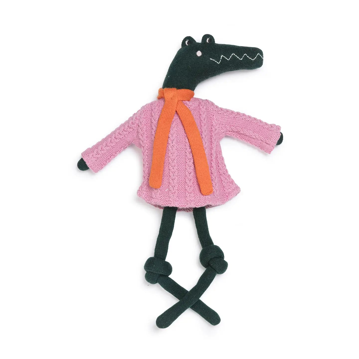 Onze krokodillenknuffel is een charismatische kerel met een aantrekkingskracht zo breed als zijn glimlach! Gebreid van 100% katoen en gevuld met een biologisch afbreekbare vulling, is onze krokodil zorgvuldig gemaakt en prachtig afgewerkt met geborduurde details. Met een trui die aan en uit kan, wacht hij gewoon op al dat fantasierijke spel!