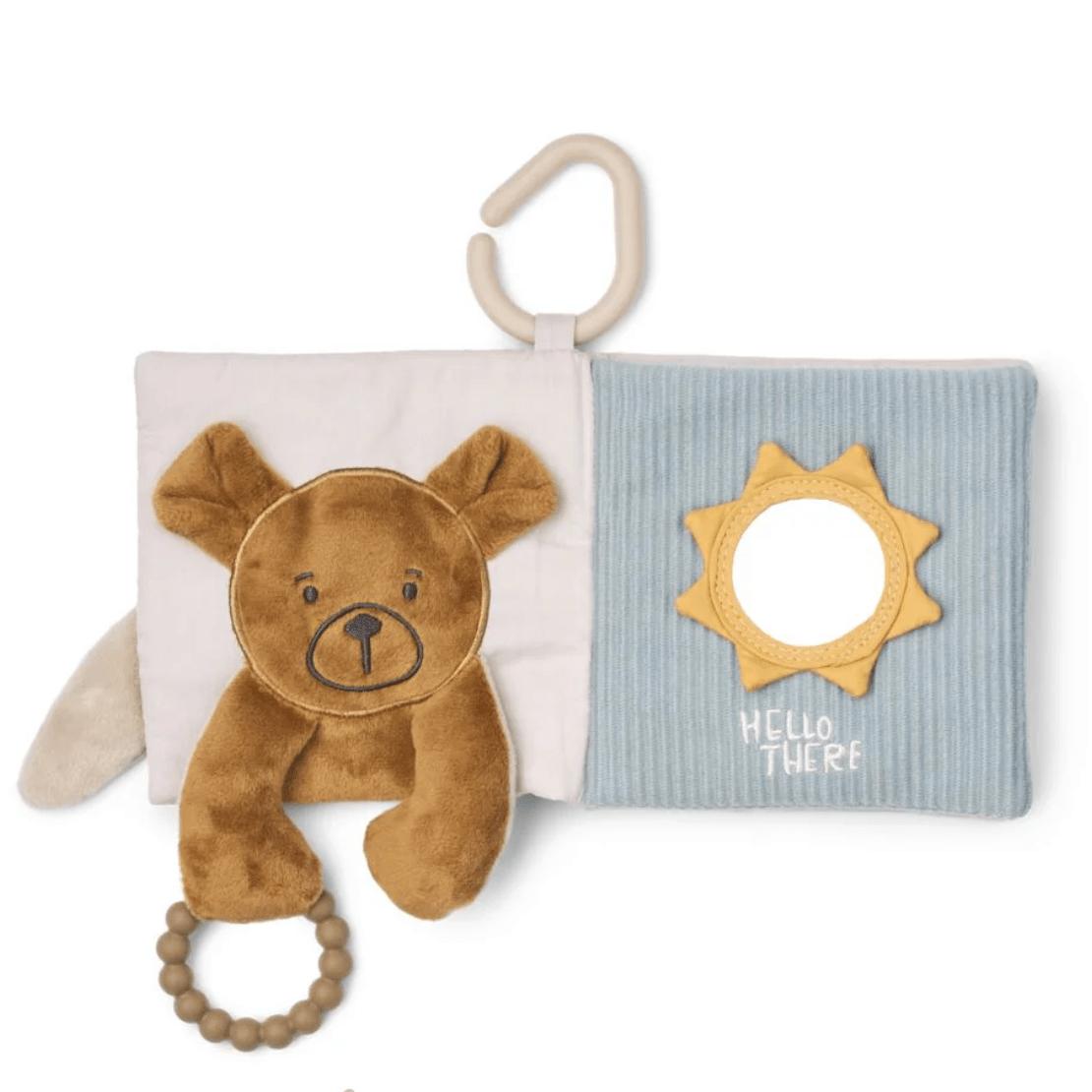 Met knisperende stof, zacht pluche en andere zintuiglijke elementen stimuleert het Fey-stoffen boekje uw kleintje om alle verschillende vormen en texturen te ontdekken. Dankzij de siliconen bevestigingsring is het ideaal om mee te nemen in de kinderwagen als vermakelijk activiteitenboekje.