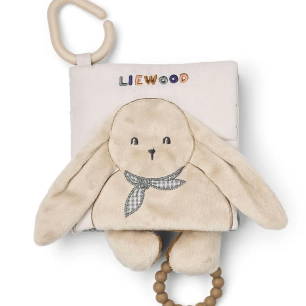 - Zacht pluche stoffen boekje versierd met schattige details van konijntjes