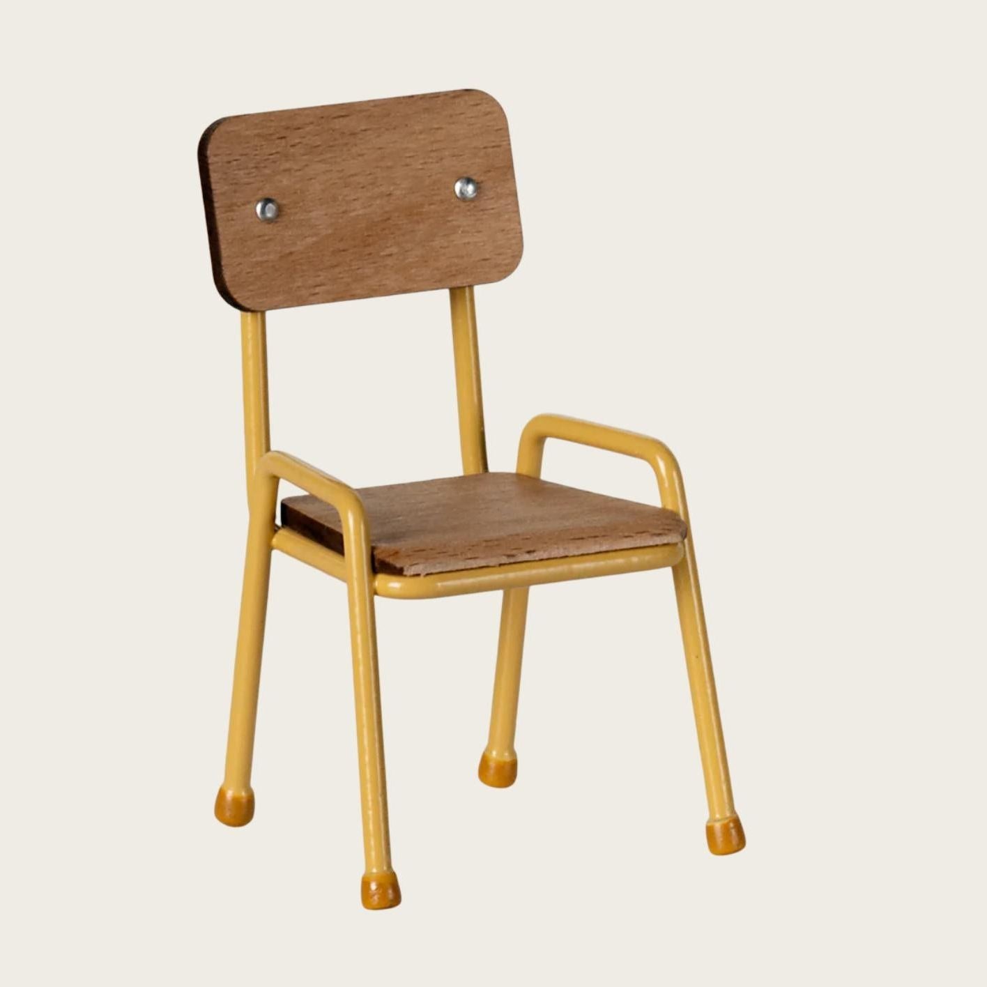 Een stoel die past bij de muizenfamilie en in veel situaties inzetbaar is. De stoel is hetzelfde model als in de Tafel en stoelenset voor muizen. Dus als je meer stoelen nodig hebt voor de tafel, dan heb je deze nodig. Let op de handgeschilderde details op het metaal.Product details
