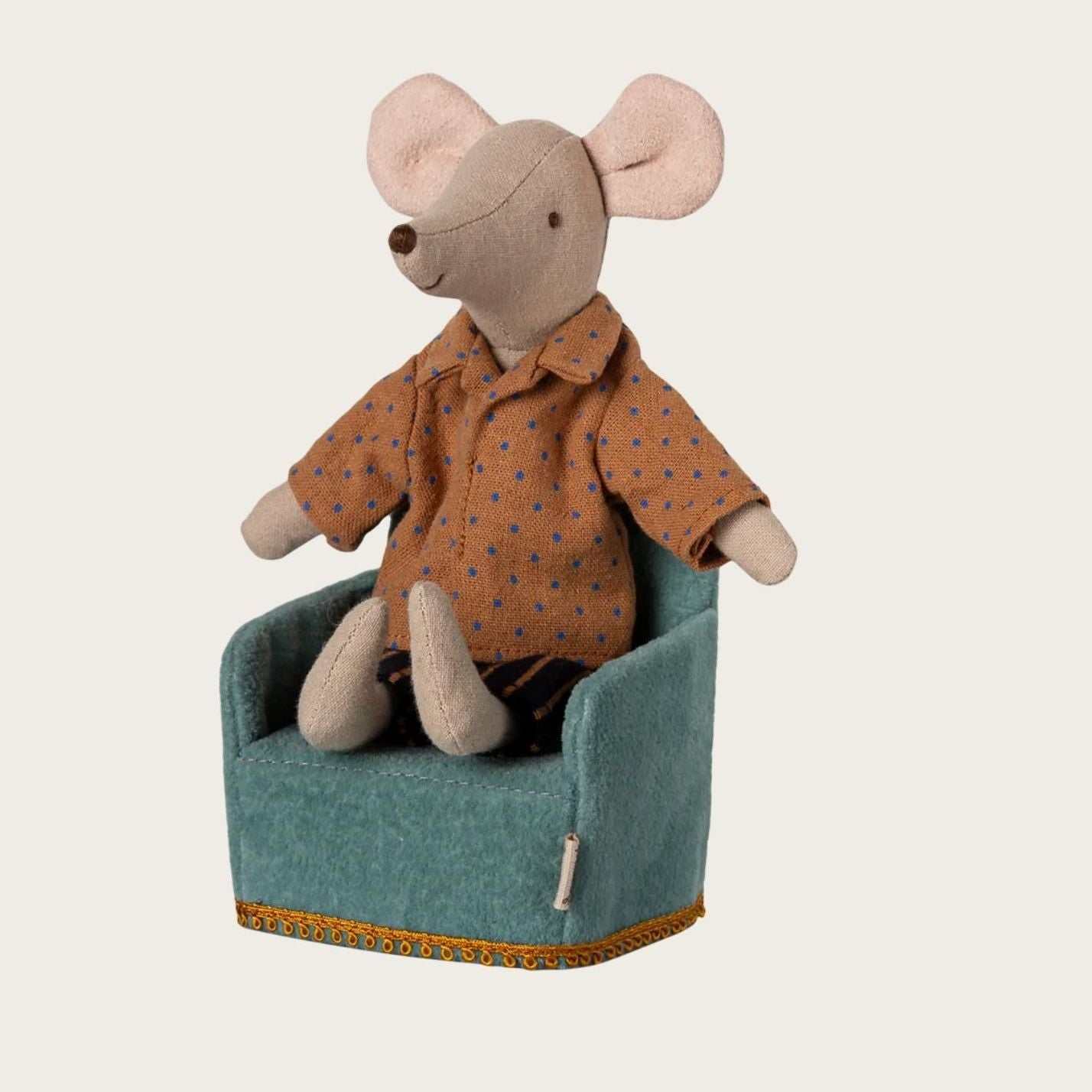 Een perfecte plek voor je kleine Maileg-vriendjes om even uit te rusten. Hij past mooi in de Muizenholboerderij. De stoel wordt plat verpakt geleverd en is eenvoudig op te vouwen en in elkaar te zetten.
