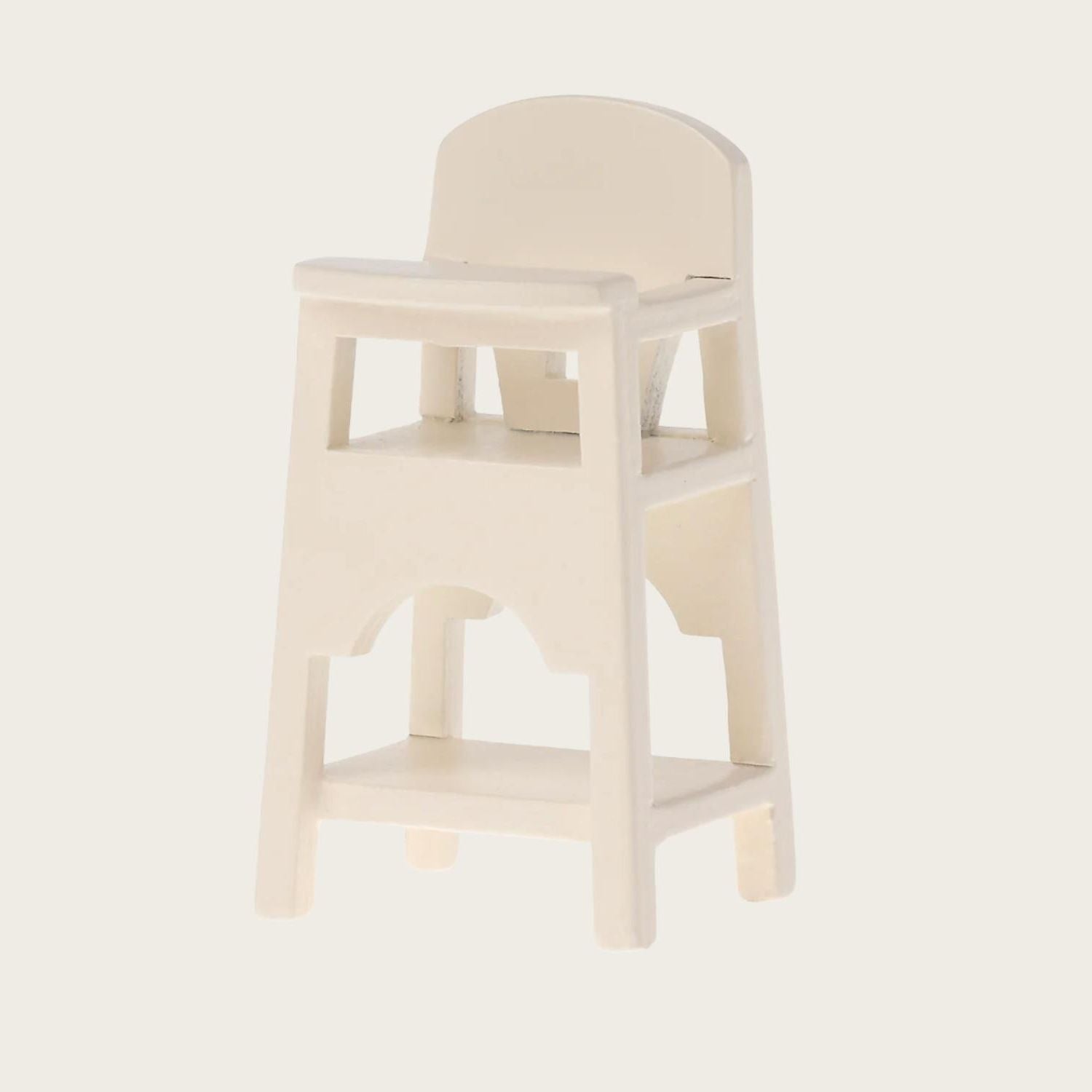 Een klassiek Maileg accessoire voor babymuizen. Deze kinderstoel is een musthave voor alle gezinnen met baby's, zodat de kleine mee kan doen aan de maaltijden.