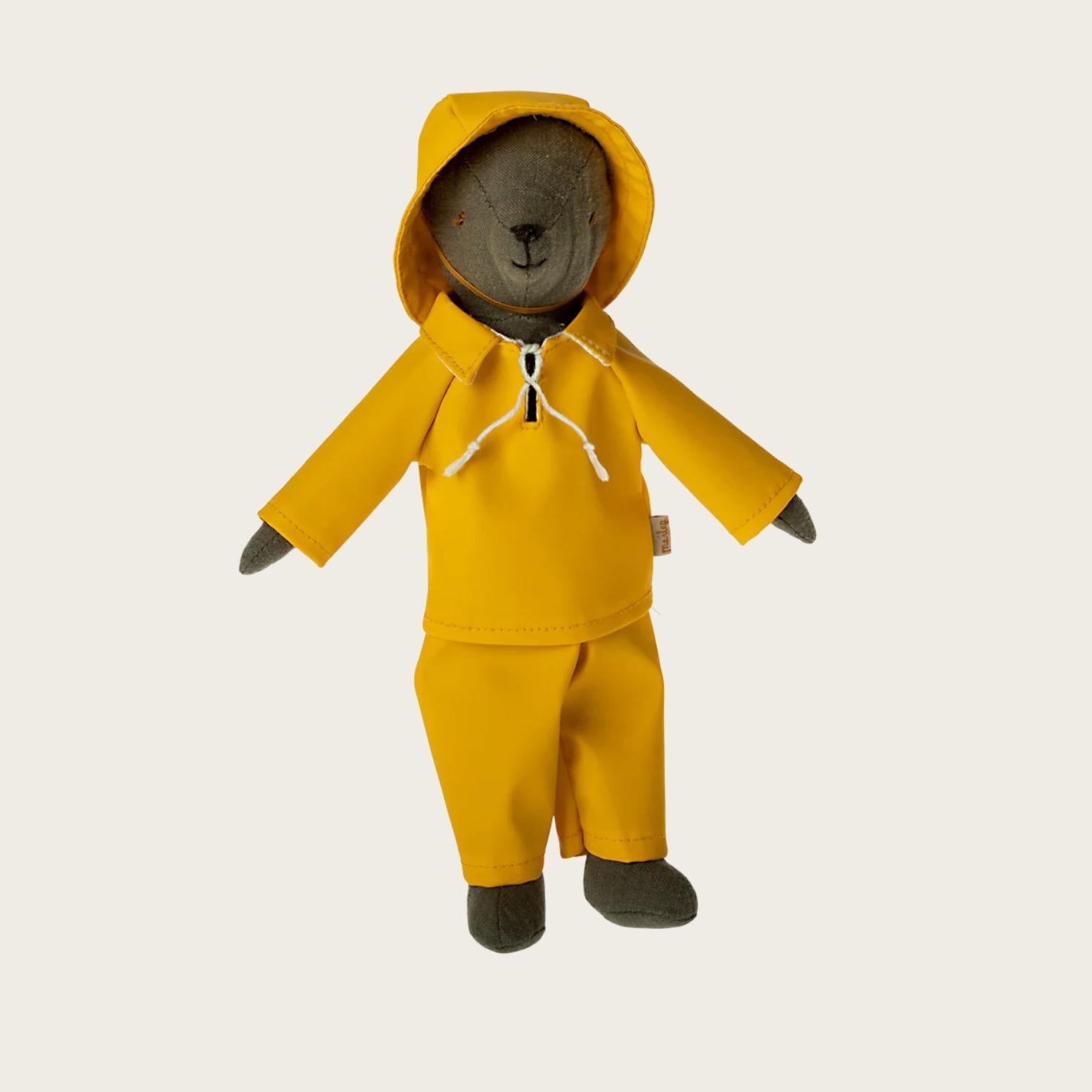 Een mooie set regenkleding die bij Teddy papa past. Het zal haar zeker droog houden op regenachtige dagen. Deze set bestaat uit een jas en een hoed.