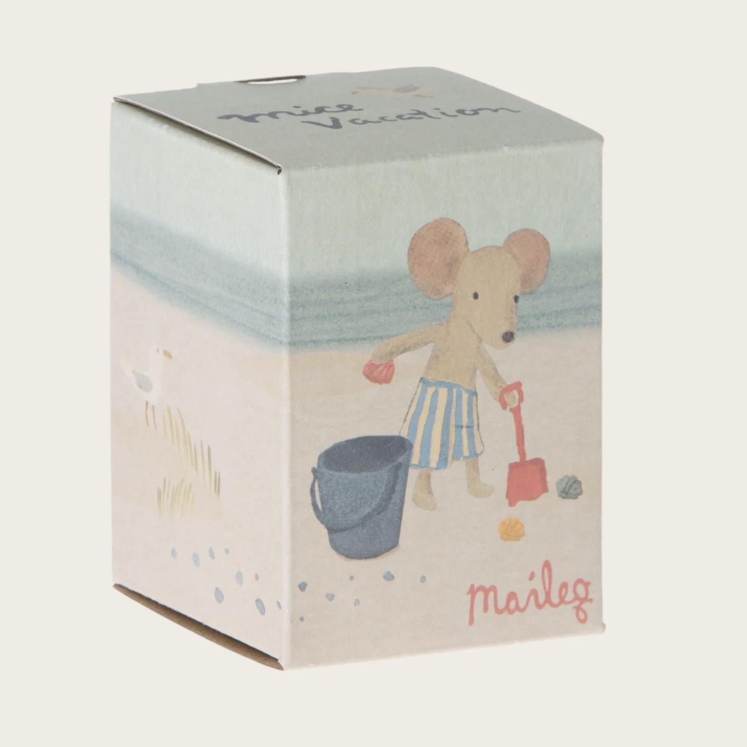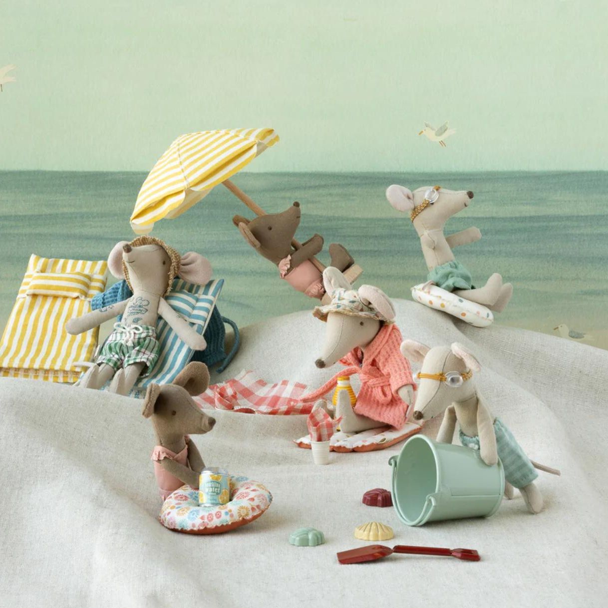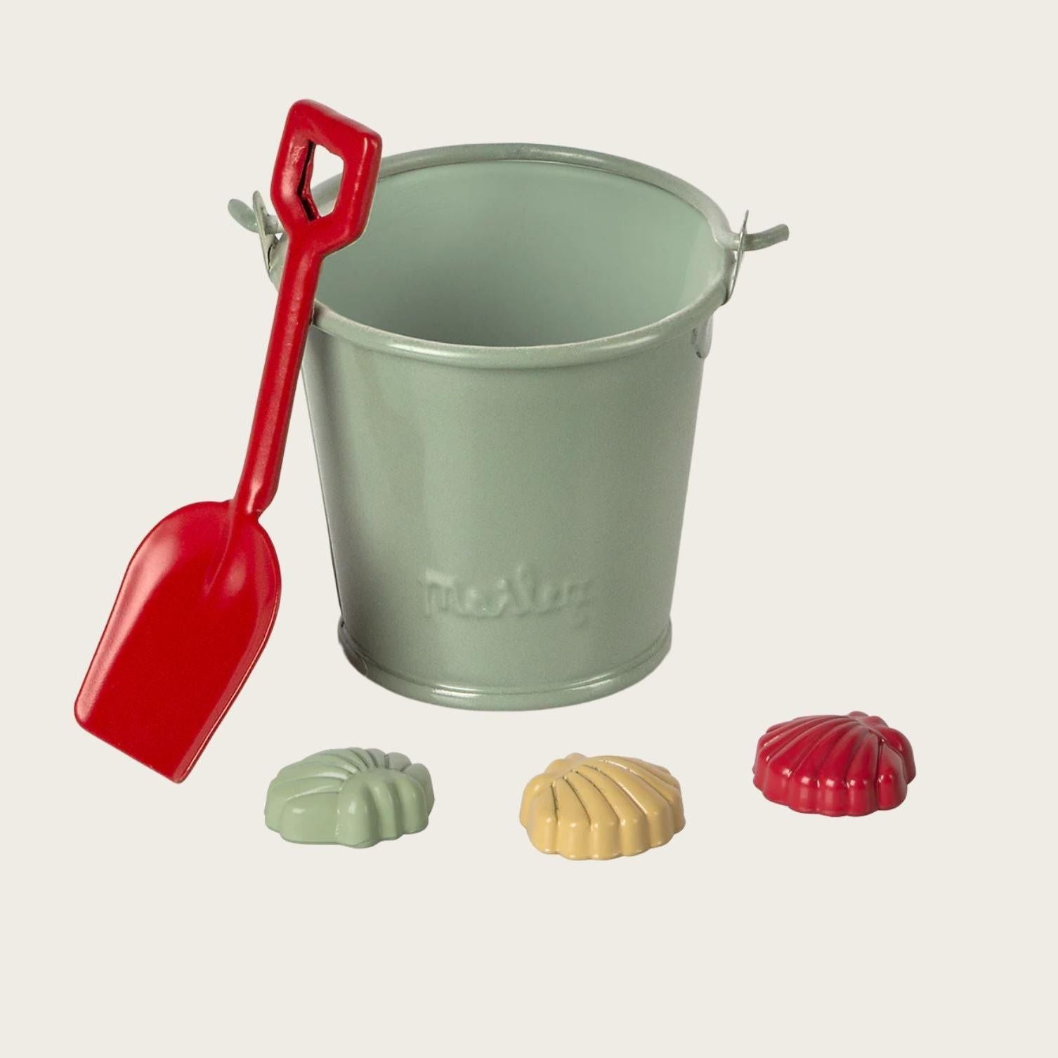 Vakantie tijd. De perfecte speelset voor op het strand. Een emmer, schep en miniatuurzandspeelgoed zijn inbegrepen.