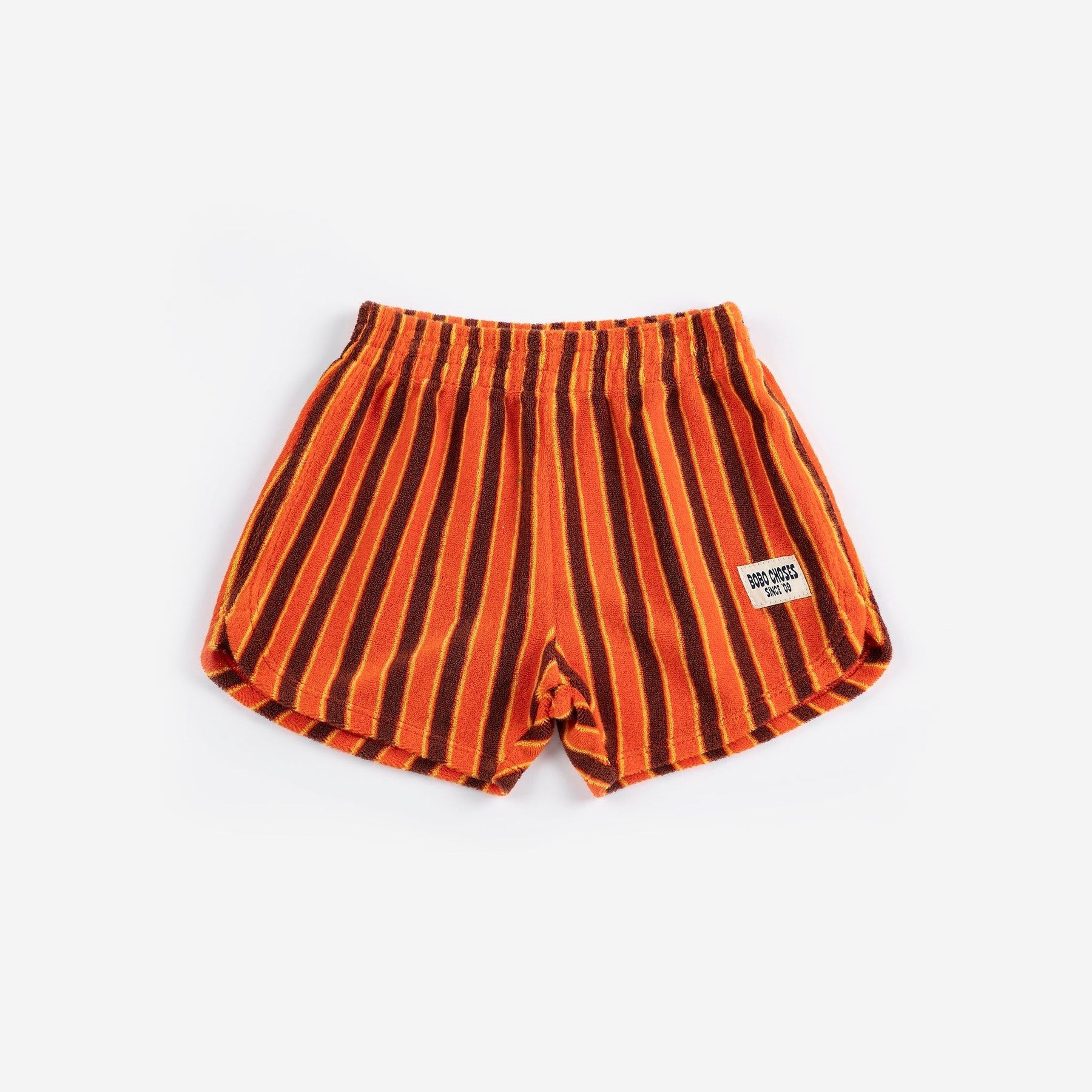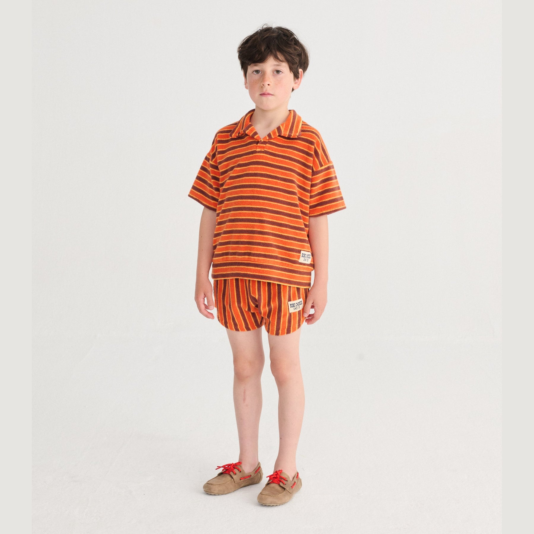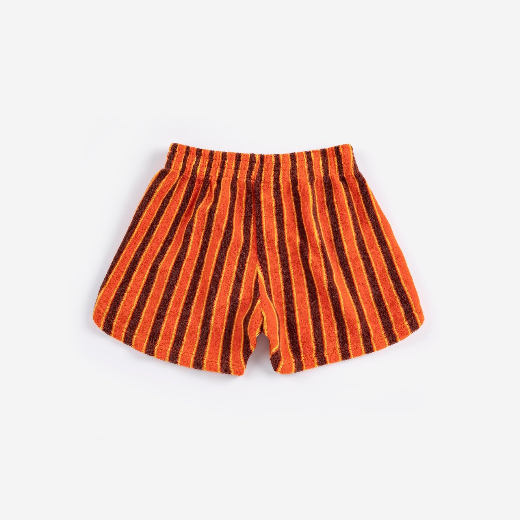 Terry short met streepjes in bruin en oranje van Bobo Choses.