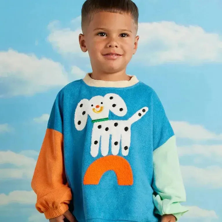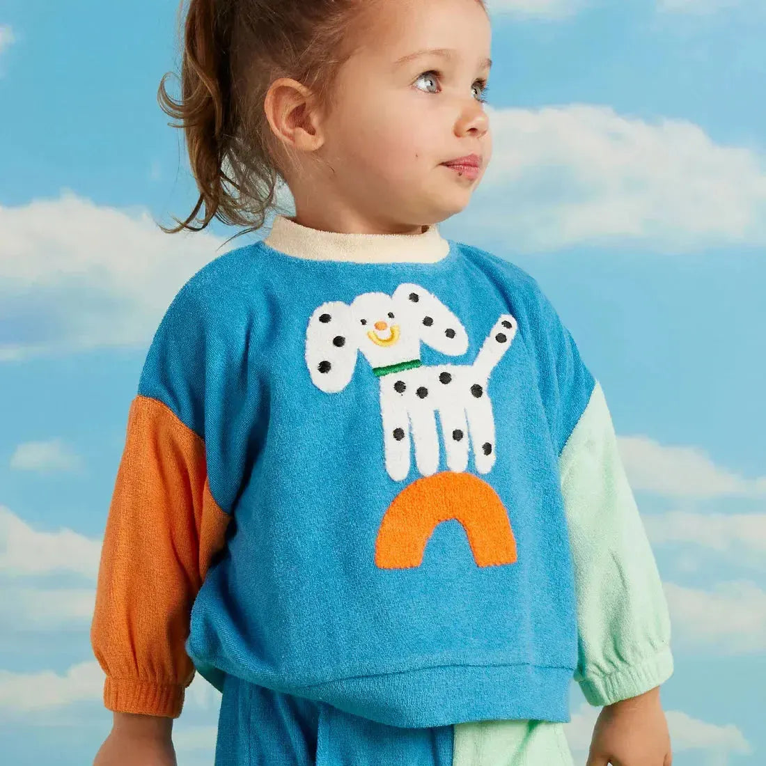 Let’s roll! Ontspan of speel erop los in deze comfortabele en duurzame terry sweat voor baby’s en kinderen. Deze sweater heeft een speelse boucle applicatie uit onze Puppy Park-collectie, geïnspireerd door de schattigste puppies die vrolijk spelen en kwispelen in het hondenpark.