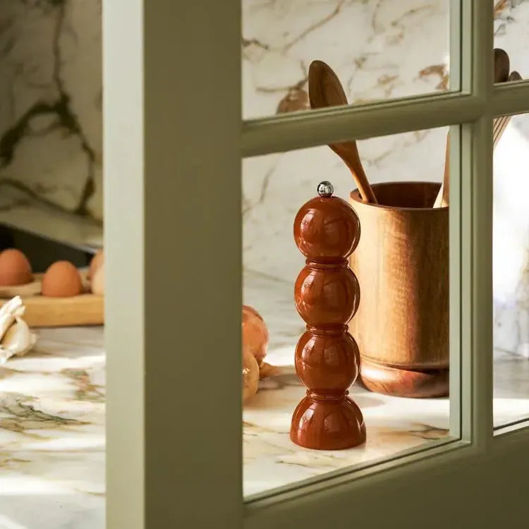 Dit exclusieve ontwerp van Addison Ross in rijke Nutmeg maakt deel uit van de herfstcollectie en voegt een gedurfde kleuraccent toe aan uw tafel. De spoelvormige molen wordt geleverd met zowel een S- als een P-roestvrijstalen schroefknop, zodat u kunt kiezen of u hem als zout- of pepermolen wilt gebruiken.