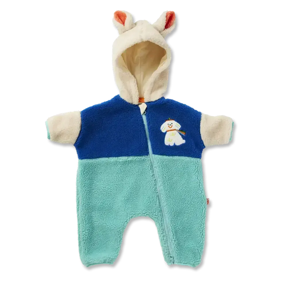 Knuffelbeer alert! Houd je kleintje heerlijk warm en cosy deze winter met onze superzachte sherpa jumpsuit voor baby's. De jumpsuit heeft een oversized pasvorm met verlaagde schouders, een handige tweerichtingsrits voor snelle en makkelijke luierwissels, een speels kleurvlakken ontwerp en een paar ondeugende kangoeroe-oren op de capuchon. De boucle applicatie is afkomstig uit onze Puppy Park-collectie. Buitenlaag van 100% polyester en een jersey katoenen voering voor extra comfort.
