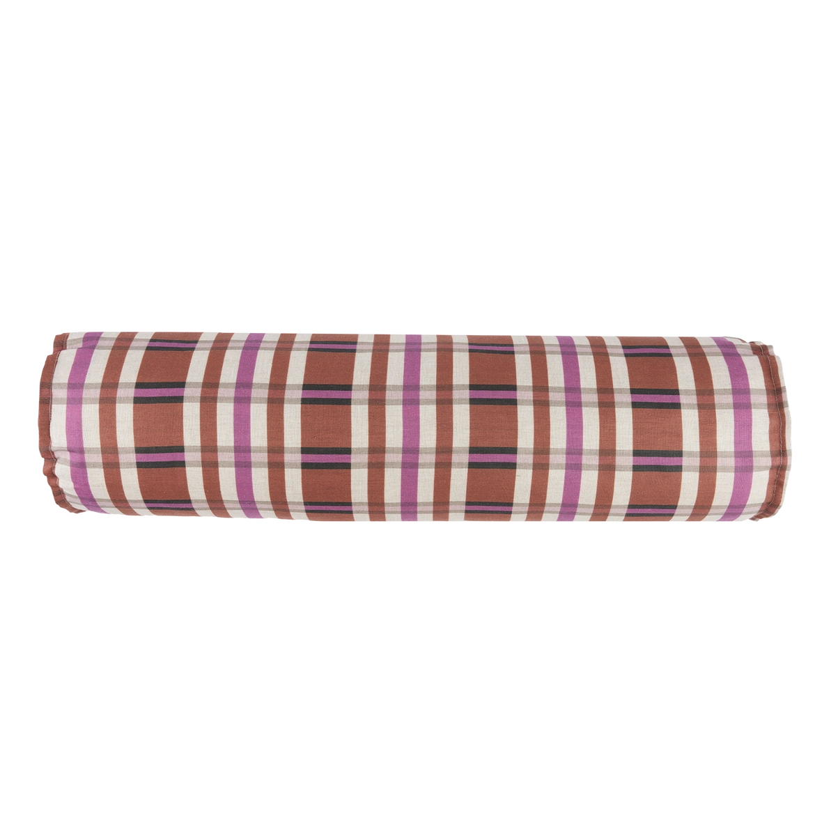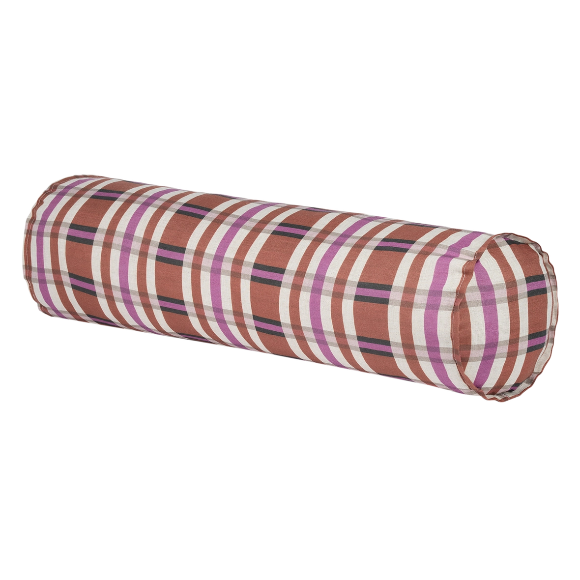 Nobodinoz Cylinder Cushion In French Linen Cliff Brown Tartan