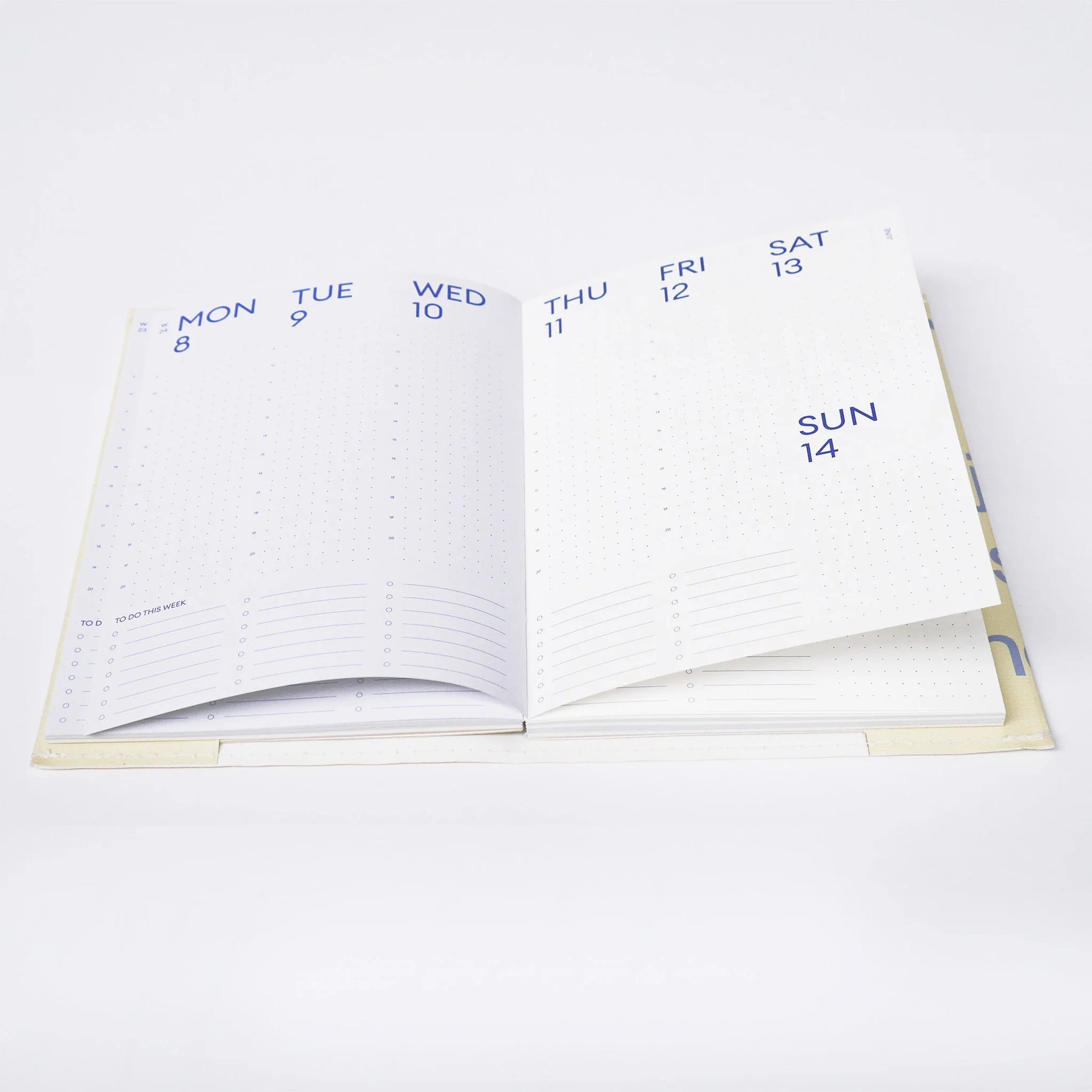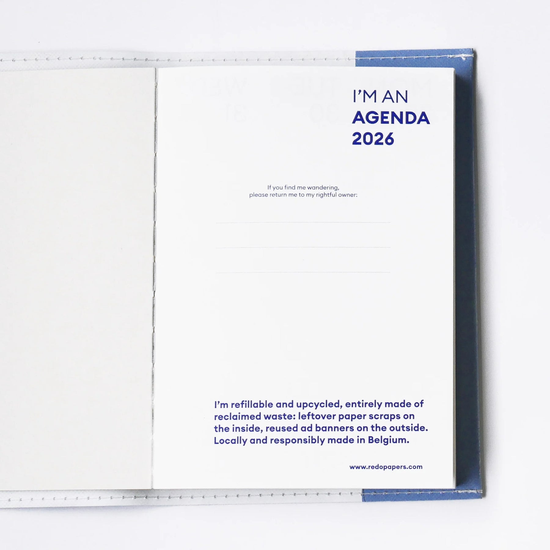 Deze agenda is jouw persoonlijke assistent. 100% gemaakt van het mooiste restpapier en oude banners. Sta op, check je agenda en pluk de dag!