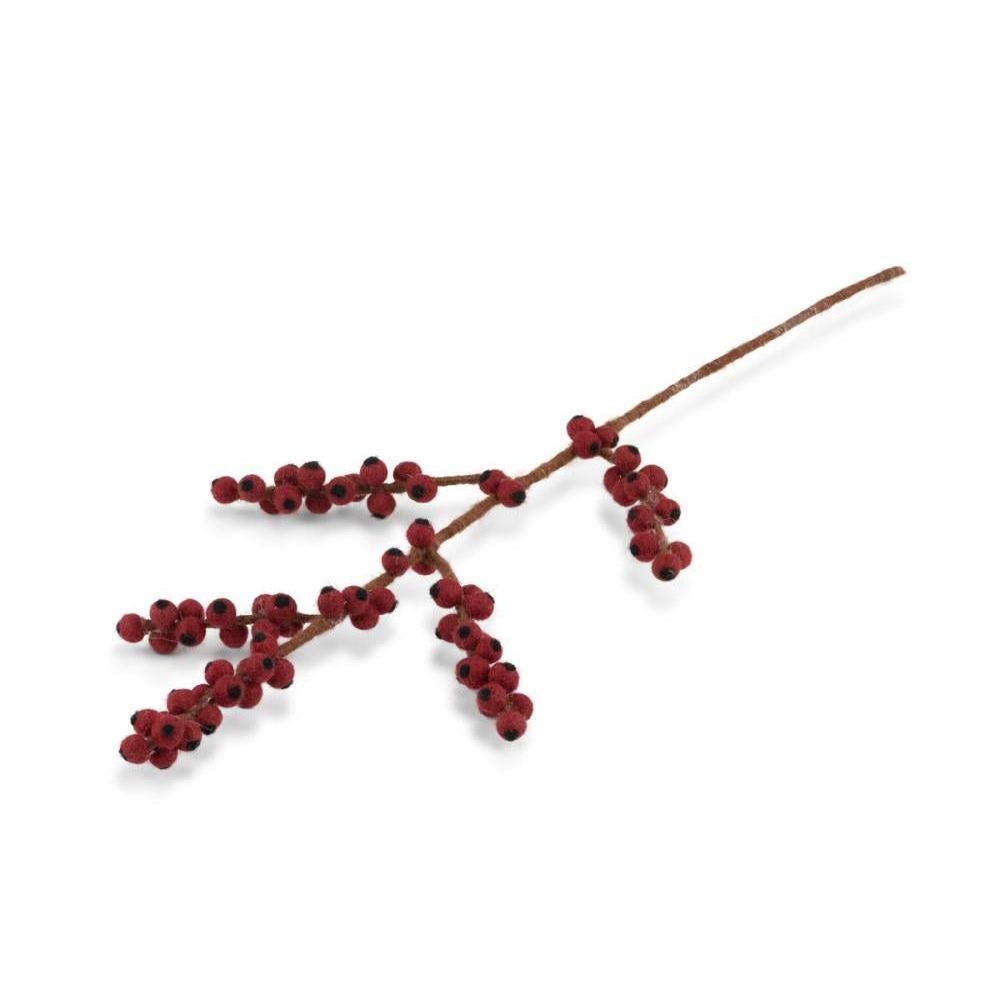 Tak bes rood gemaakt van vilt. In de stengel is metaaldraad verwerkt zodat de tak in vorm gebogen kan worden indien gewenst. Erg leuk in een vaas!