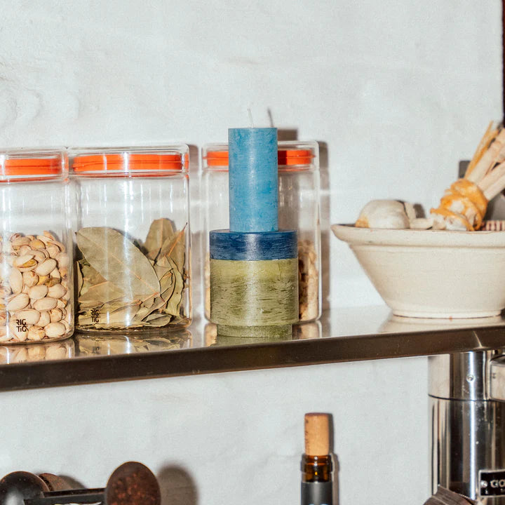 De doos bevat 1 stapel van 3 kaarsen in verschillende afmetingen.