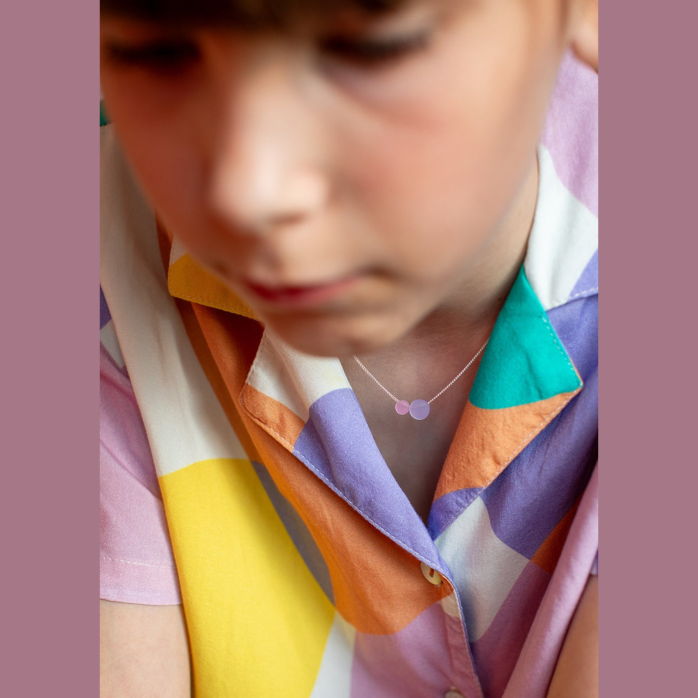 Kleur kan zo opvallend zijn – zelfs in kleine hoeveelheden. Door deze ketting te reduceren tot de minimalistische vorm van een grafische cirkel, gaat alle aandacht naar de kleur.