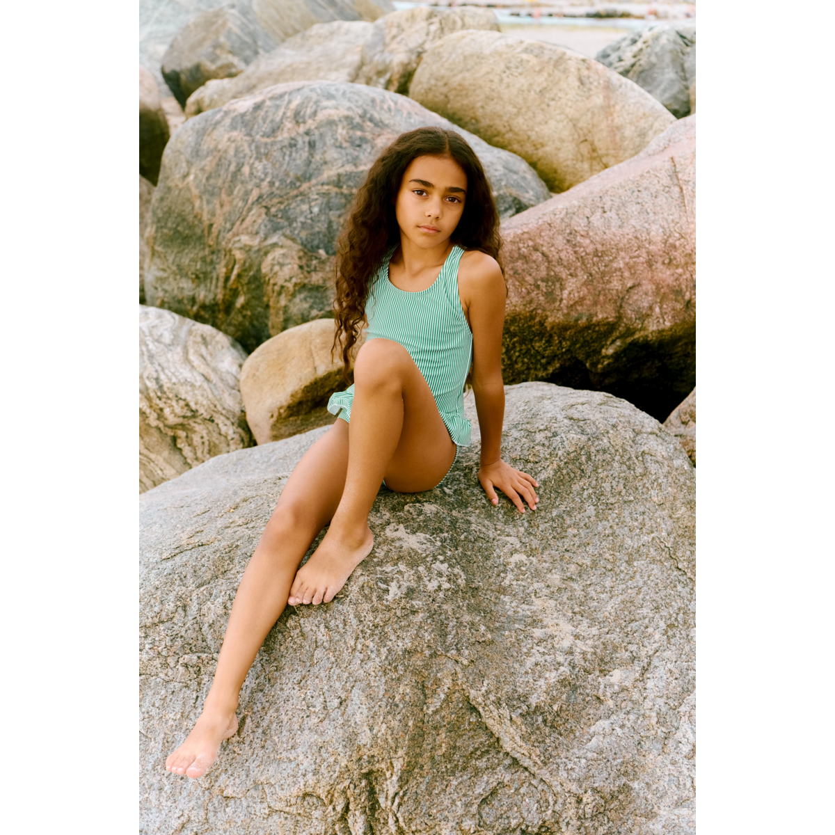 Een onmisbaar item voor zonnige dagen: het klassieke AMARA-zwempak is gemaakt voor urenlang zandkastelen bouwen en spetteren in het zwembad. De geplooide tailleband en gekruiste bandjes op de rug geven een vleugje elegantie, terwijl de volledig gevoerde, elastische stof zorgt voor comfort de hele dag door. Met UV40+-bescherming en sneldrogend gerecycled materiaal is dit zwempak een must-have voor elk zomeravontuur.