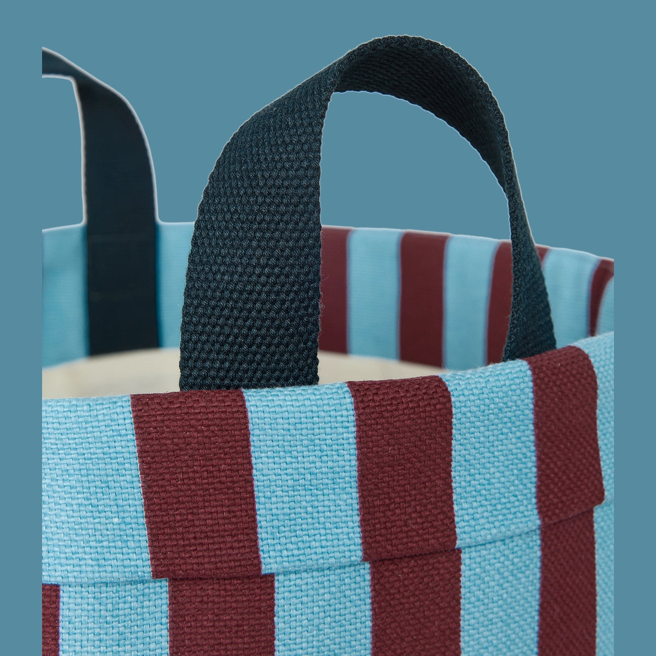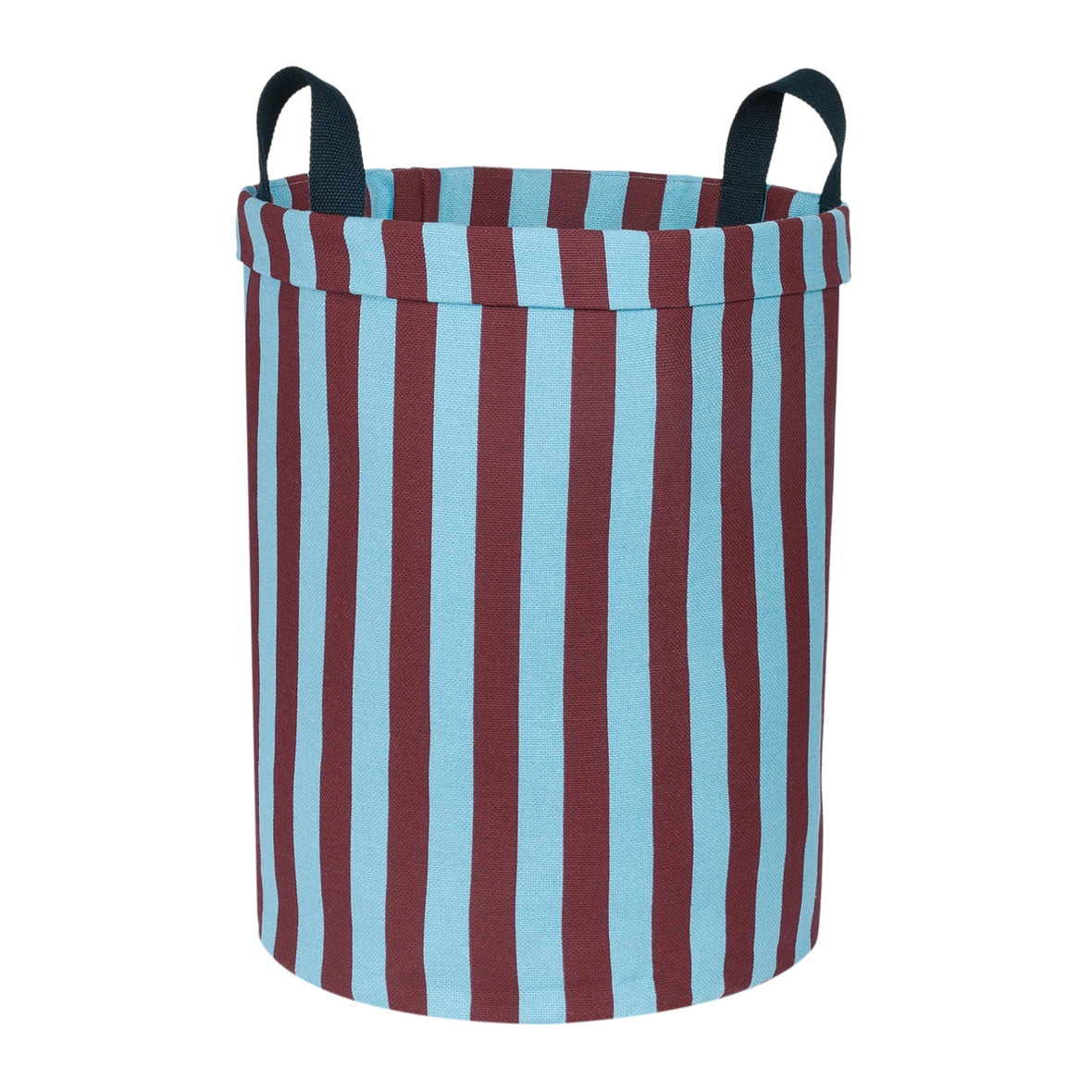 Nobodinoz Round Large Storage Basket Burgundy Blue Stripes