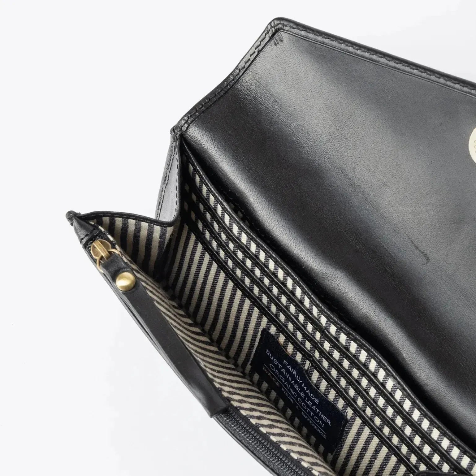 The Envelope Pixie comes in our Classic Leather, which has a classy, yet modern and sophisticated look. It is characterized by its shining surface and a smooth and gentle feel. Our premium quality sustainable leather is tanned without the use of harmful chemicals and has no synthetic top finish. Because of the open structure, scratching will occur and irregularity in color and texture are part of this leather. The leather will develop over time and will look even better the more you use it! We help our customers to take good care of their purchase. With a little love and care your bag will last for years. We celebrate used products and encourage you to repair whenever possible
