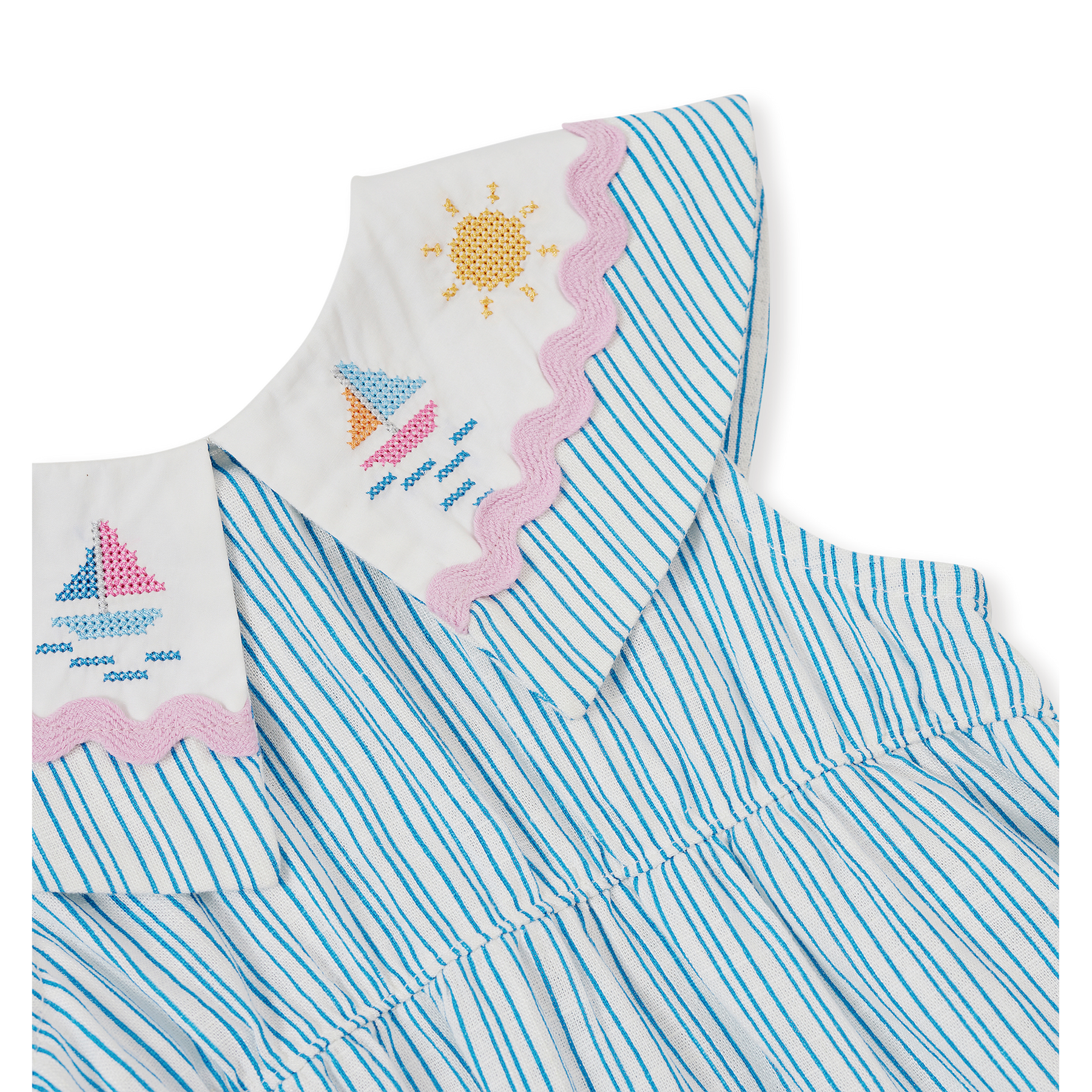 Deze jurk van Goldie + Ace is ongelooflijk mooi. De jurk heeft een mooie bootkraag en leuke details op kraag en zakjes.