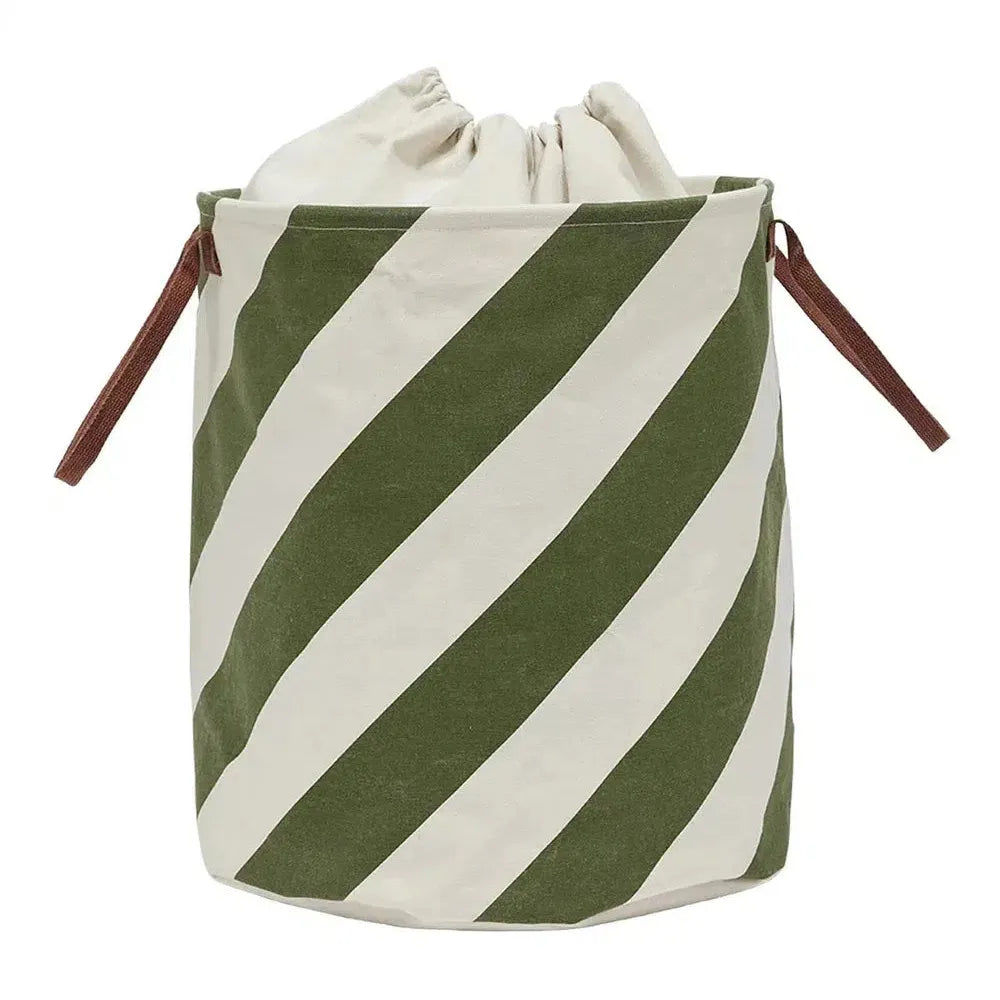 De Sakki Opbergmand heeft een speels gestreept ontwerp met een afsluitbaar koord. Perfect voor het organiseren en vervoeren van dekbedden en andere spullen, combineert het functionaliteit met stijl, waardoor het een ideale aanvulling is voor elk huis.
