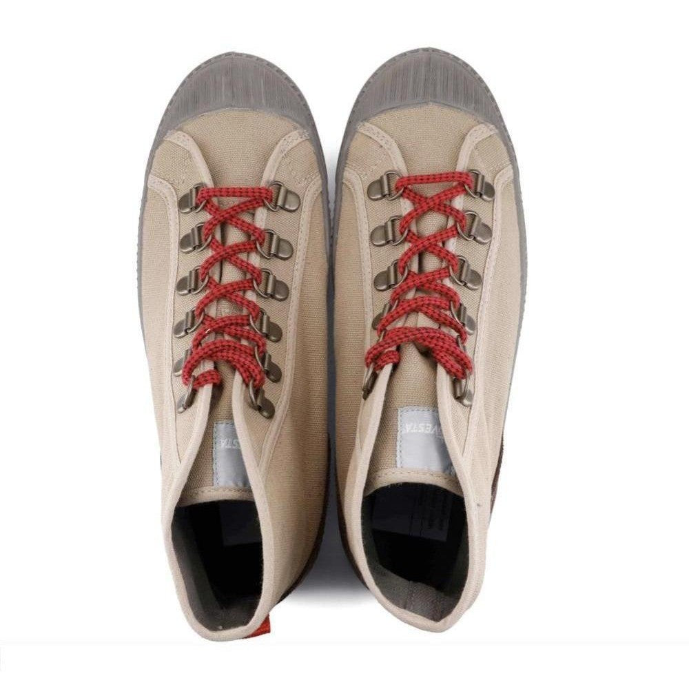 Leuke sneaker van het merk Novesta. Met typische 'chunky' rubberen zool. Bij dit model krijg je 2 paar veters, 1 paar gele veters en 1 paar kaki veters! Deze leuke schoenen zijn ook nog eens 100% vegan én met de hand gemaakt in Slovakije, een topper!