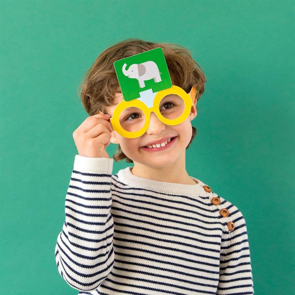 Bevat 4 kaartbrillen in 2 maten, 1 timer en 50 kleurrijke objectkaarten.