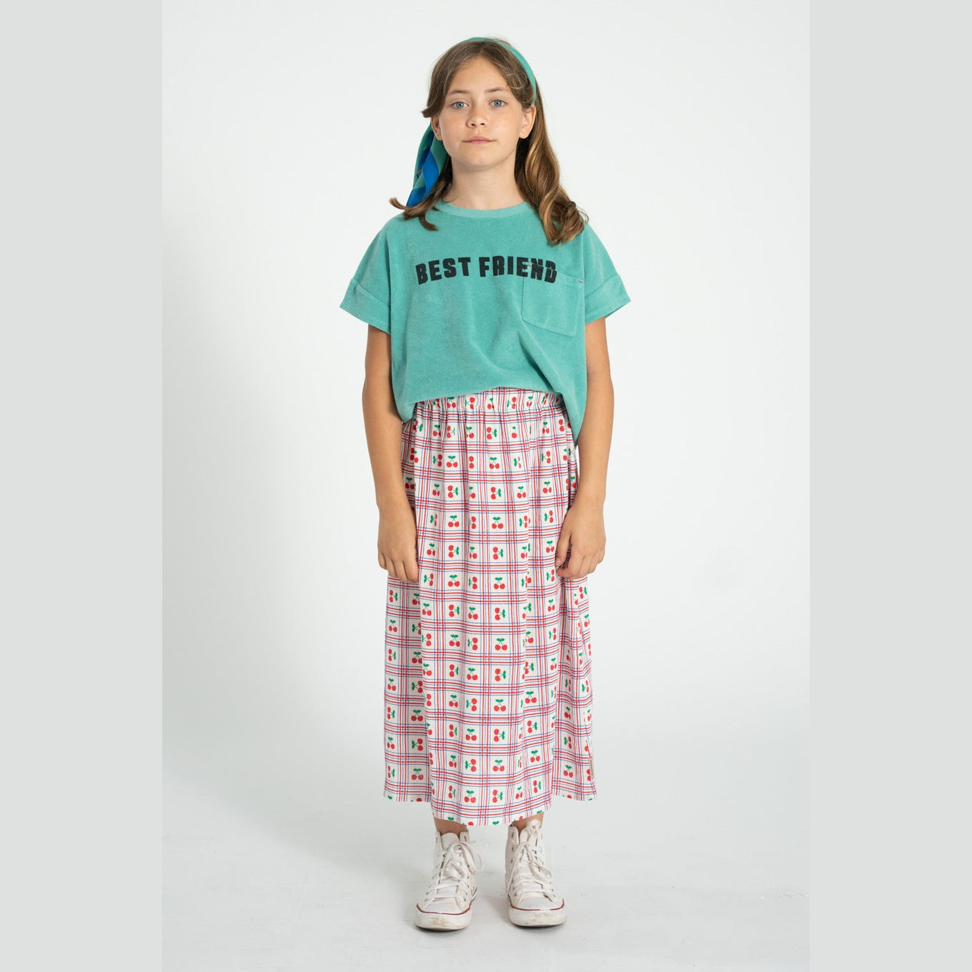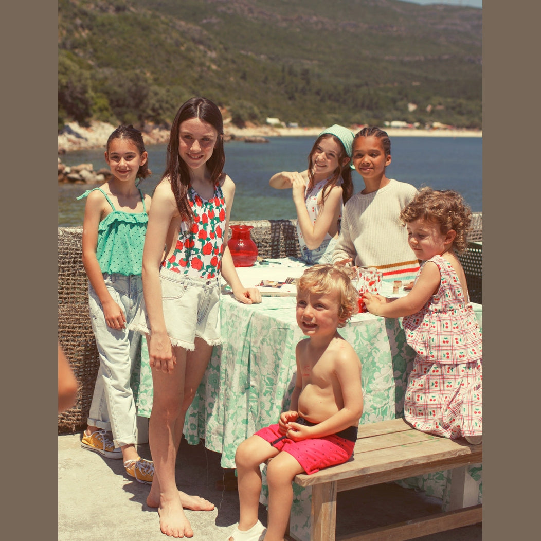 Piupiuchick Long Skirt Ecru With Cherries Allover