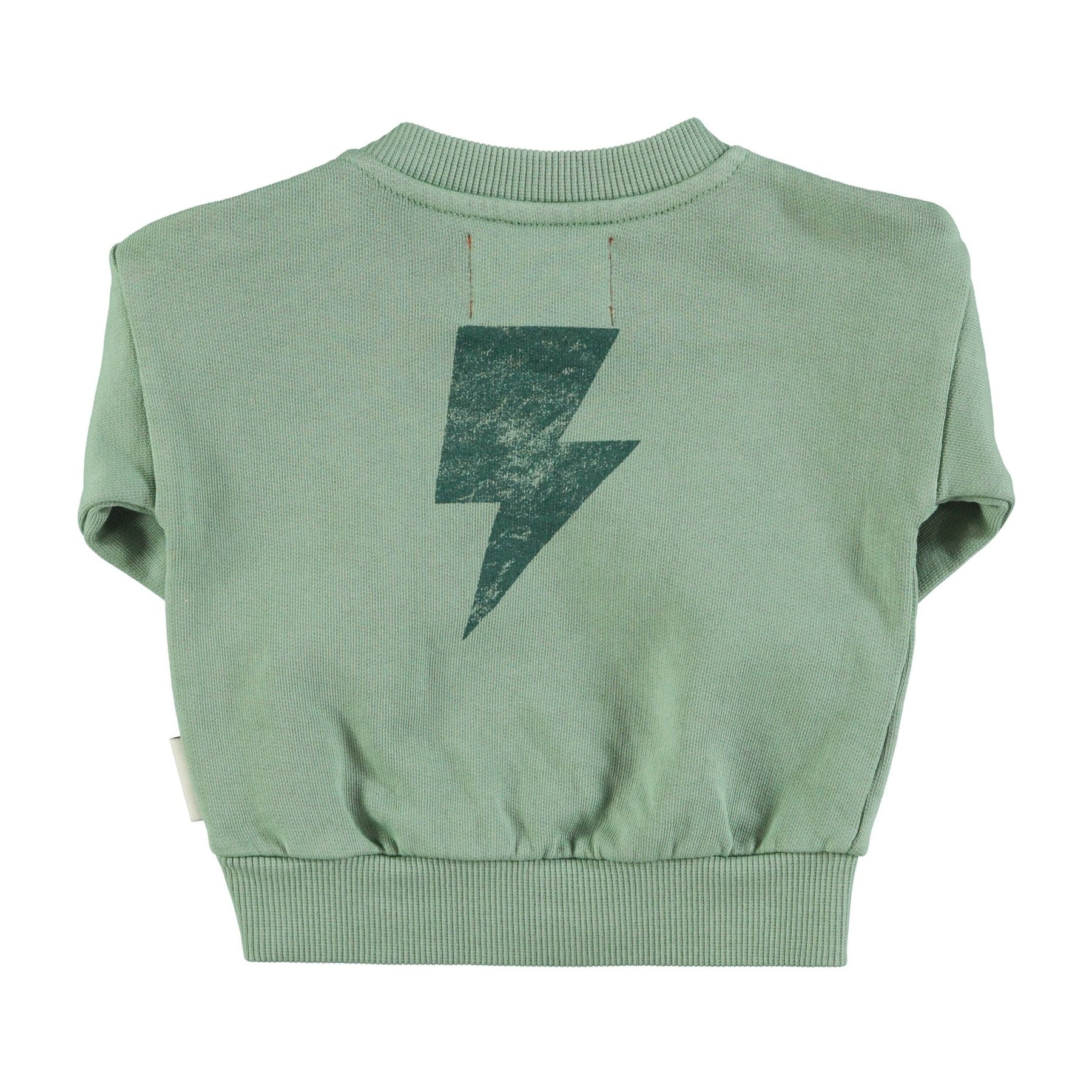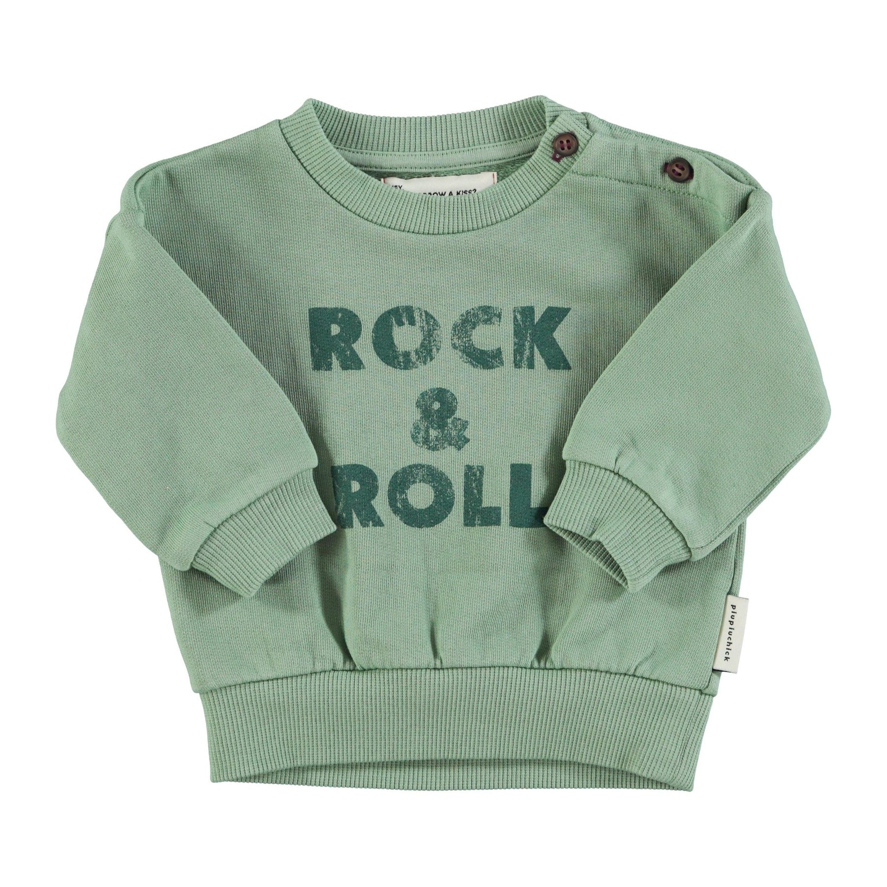 Sweatshirt van Piupiuchick met opschrift "rock & roll" op de voorkant en een bliksemschicht op de achterkant. Gekaard biologisch katoenen fleece. Geribbelde cufs. Babymaten hebben knopen op de schouders.