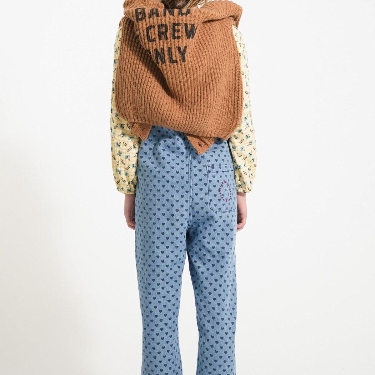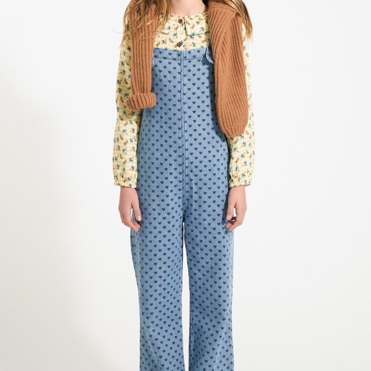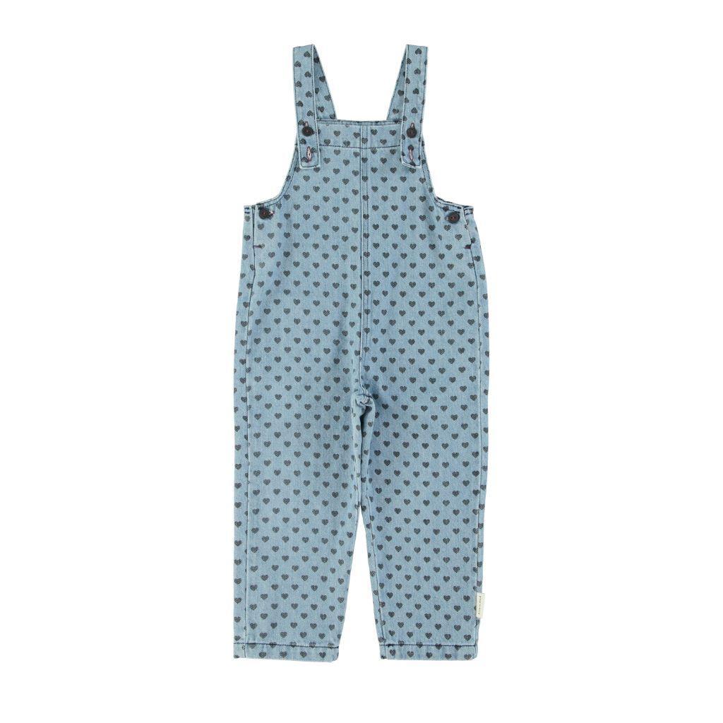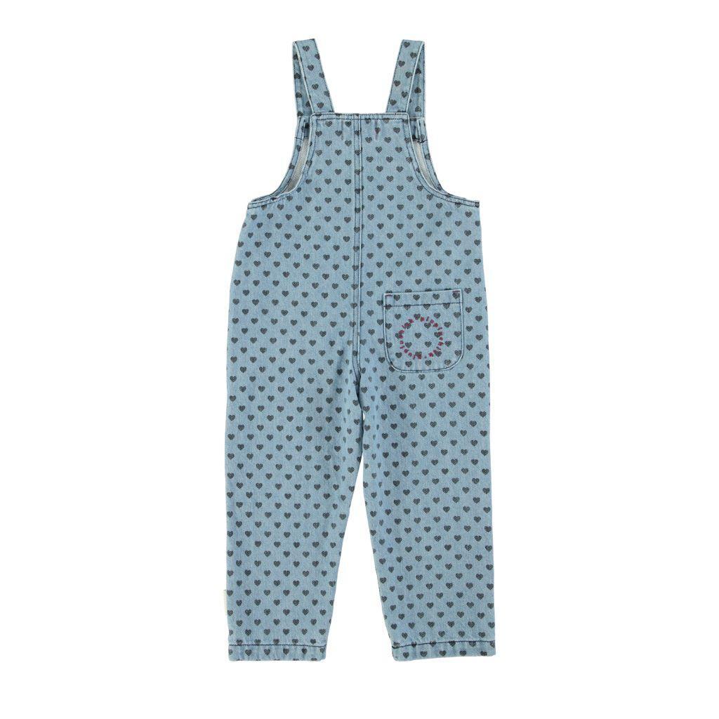 Piupiuchick Dungarees Washed Blue Denim With Black Hearts
