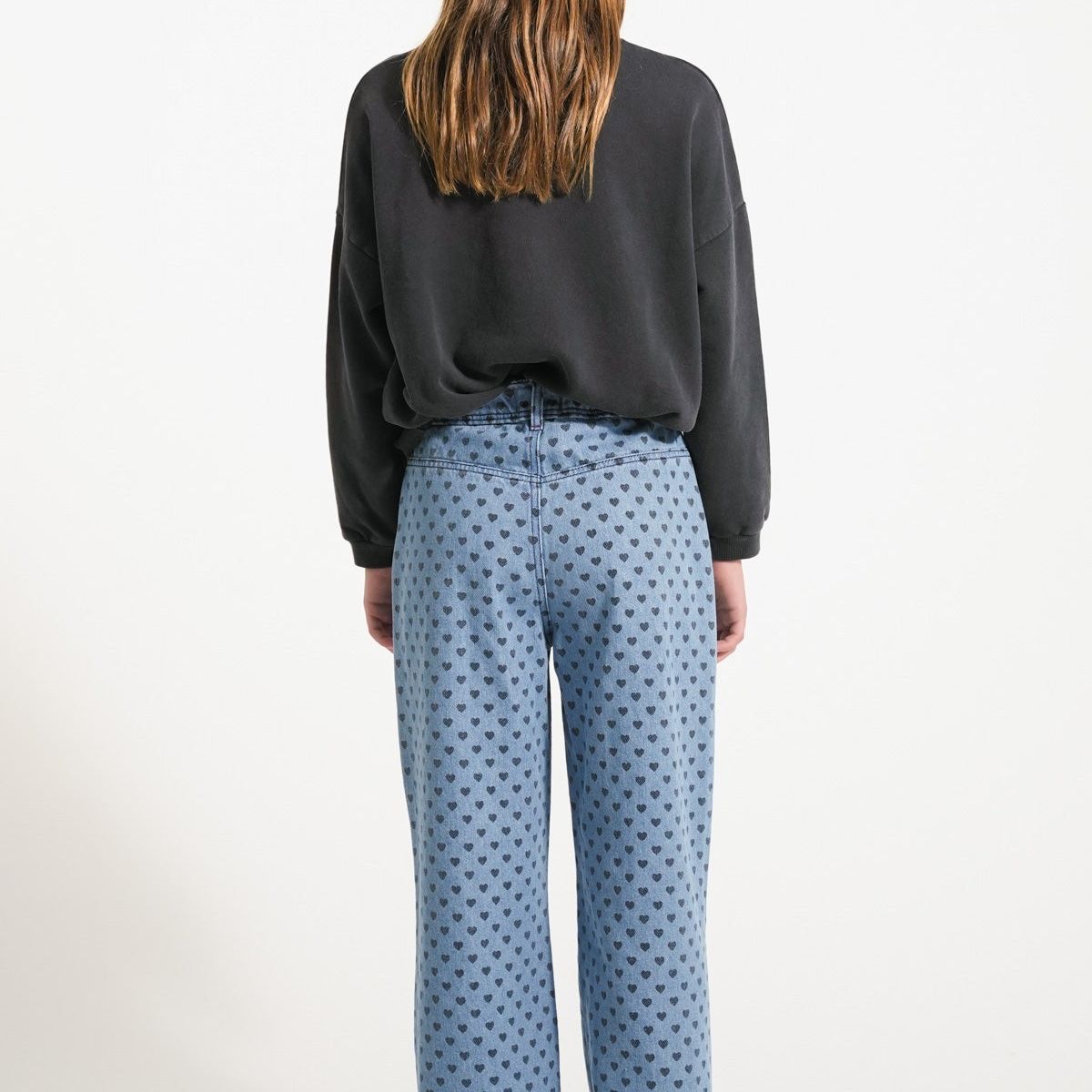 Flare broek met verstelbare taille. Riemlussen in taille. Knopen aan de voorkant. Twee voorzakken, waarvan één gedetailleerd met geborduurd bordeaux logo.