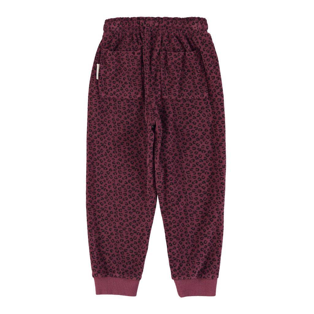Joggingbroek van organisch badstof katoen met elastiek in de taille en zwart koord. Zomen van wafelstof. Opgezette zij- en achterzakken.